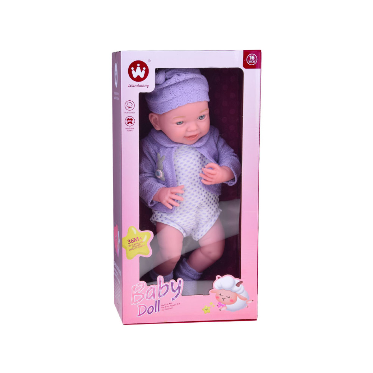 Smaidīga Lelle 40cm - Bērnu Lelle ar Violeto Džemperīti