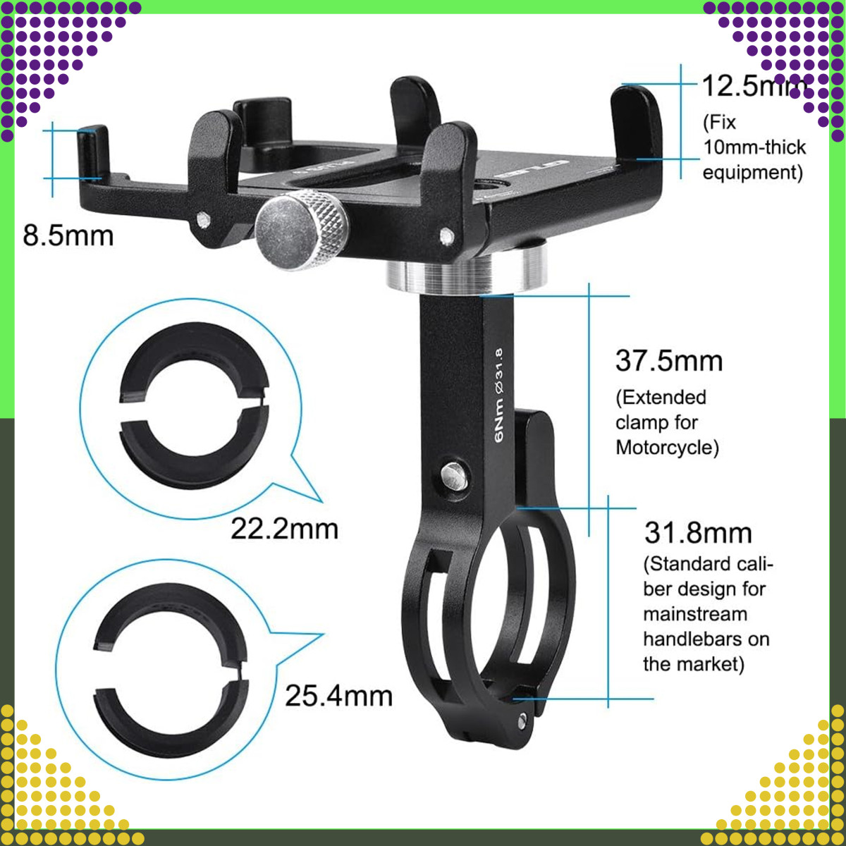 Velosipēda/Motocikla Turētājs GUB ir izgatavots no izturīga alumīnija sakausējuma, saderīgs ar telefoniem no 3.5 līdz 6.2 collām. Pateicoties regulēšanai (50-100 mm) un universālai stiprināšanai, tas der stūrēm ar diametru 25,4-31,8 mm. Nodrošina telefona stabilitāti un drošību pat uz nelīdzenām virsmām.
