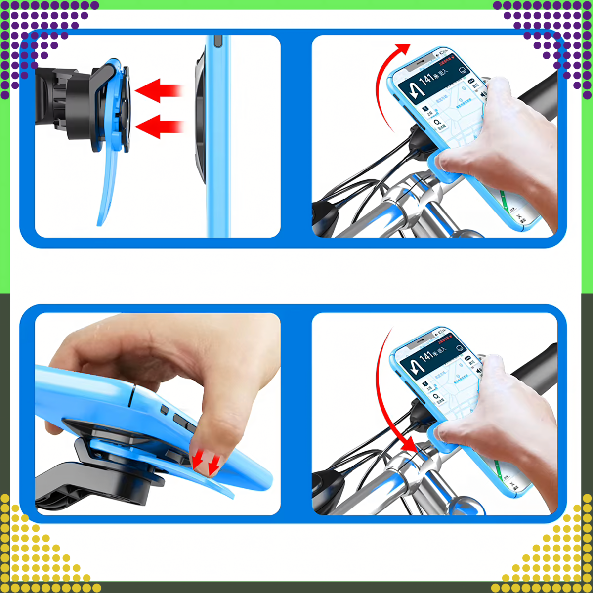 Universālais telefona turētājs velosipēdam un motociklam ir praktisks aksesuārs, kas ļauj droši un ērti piestiprināt viedtālruni pie velosipēda, motocikla vai kvada stūres. Piemērots ierīcēm ar ekrāniem no 4,7 līdz 7,2 collām un stieņiem ar diametru 22,2-28,6 mm. Aprīkots ar spēcīgu 3M līmi un intuitīvu fiksācijas mehānismu, kas nodrošina stabilu telefona turēšanu brauciena laikā.
