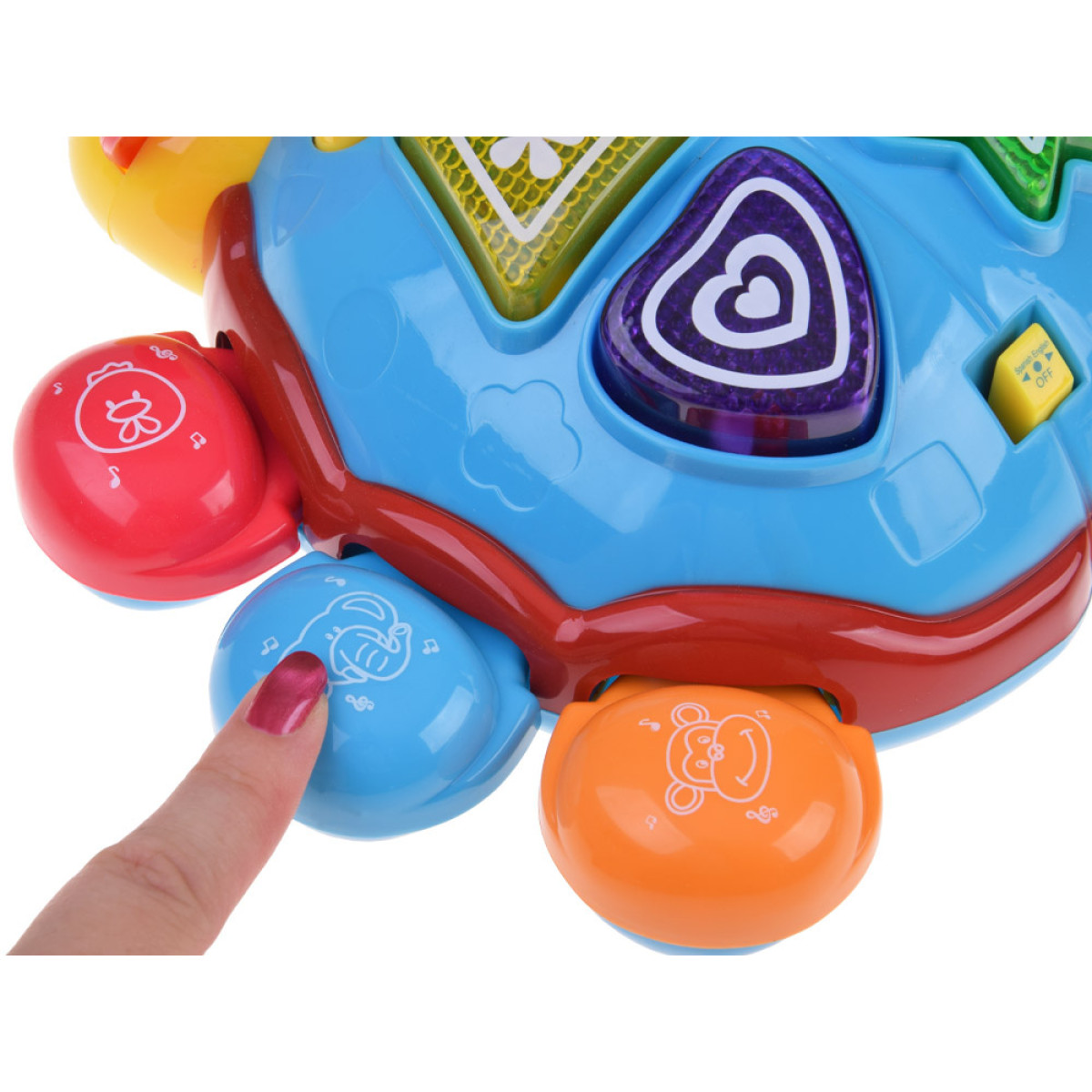 - Uz kāpuriņa muguras atrodas poga ar noti, kas aktivizē jautras melodijas, pavadot ar mirgojošām gaismiņām