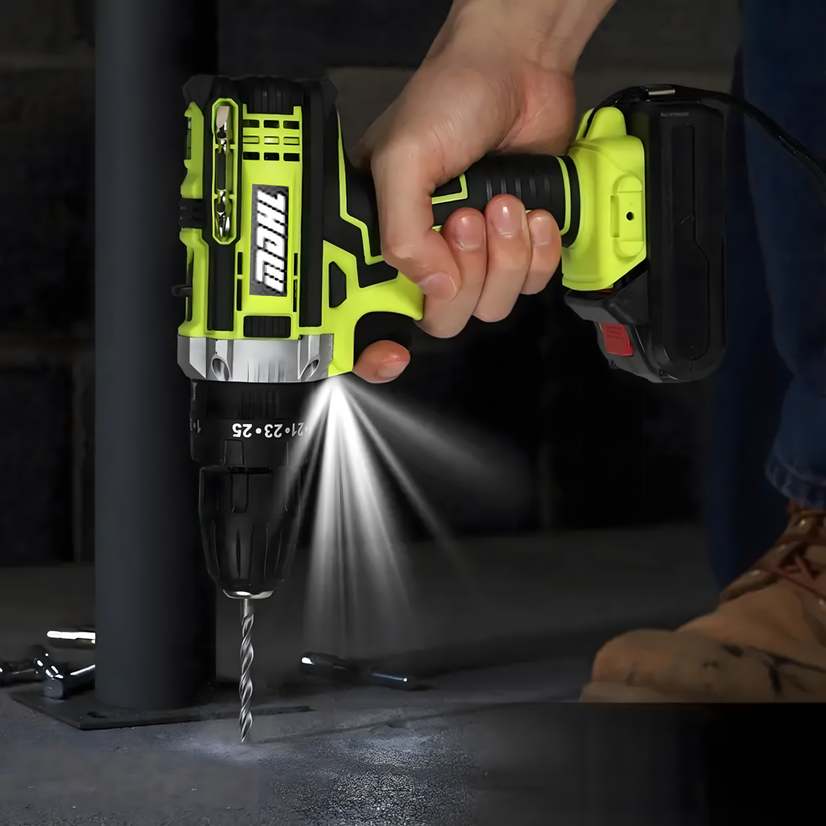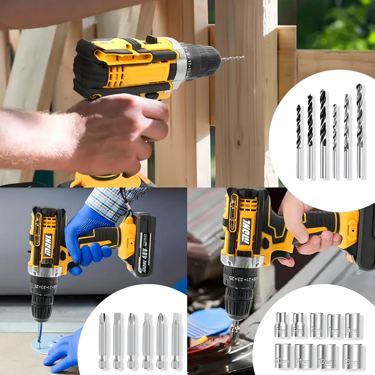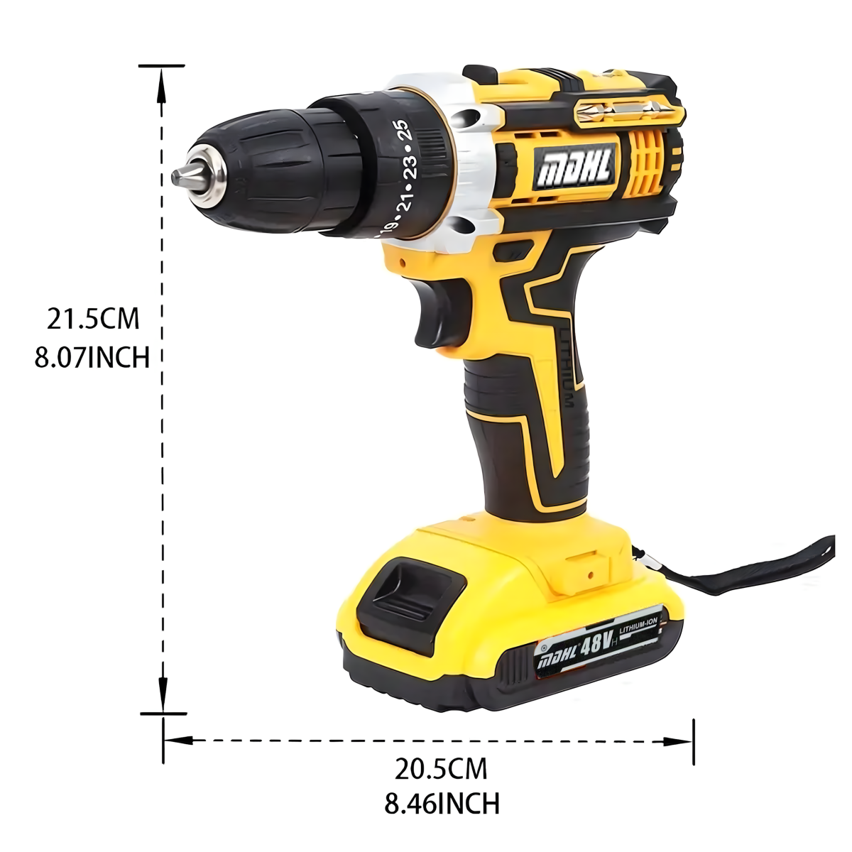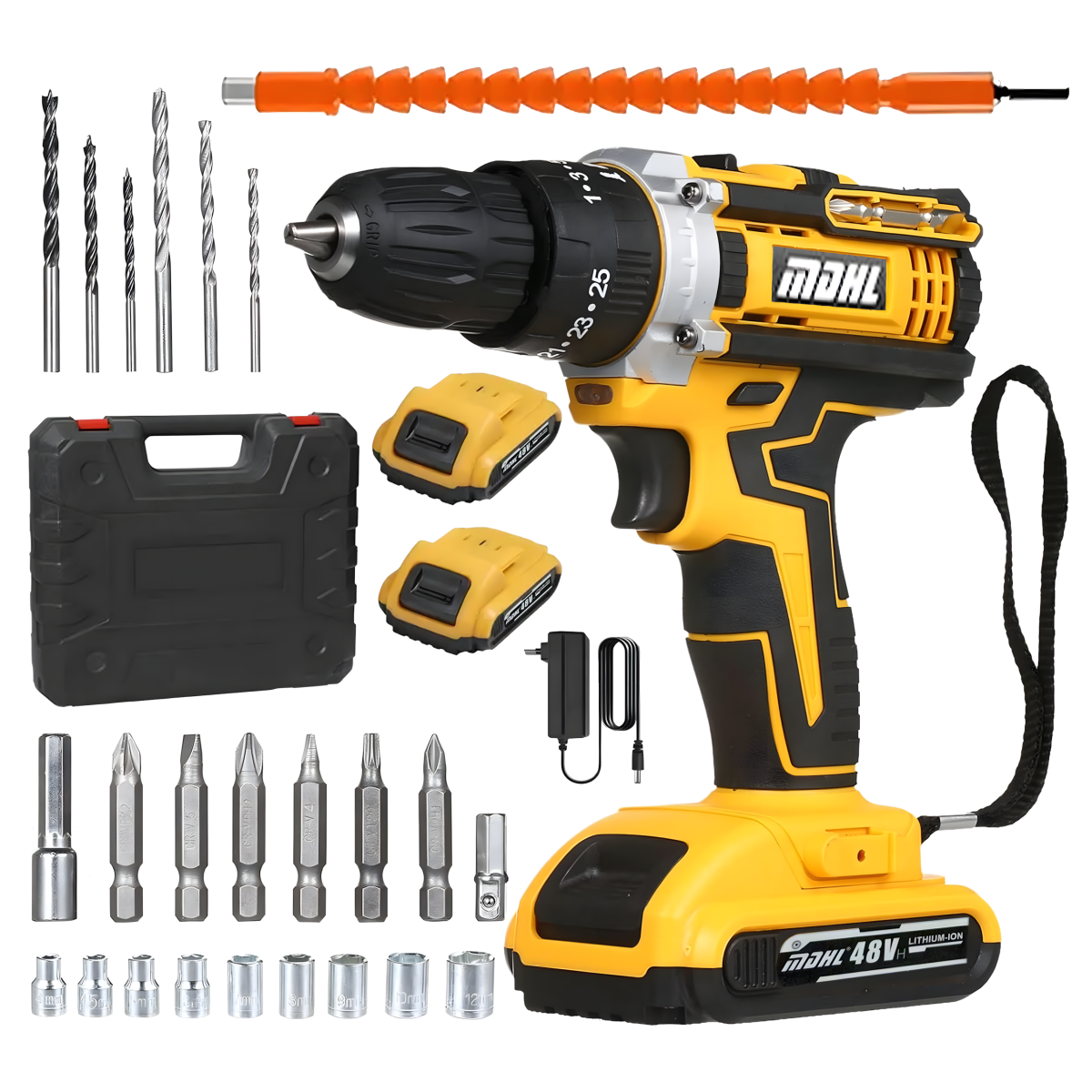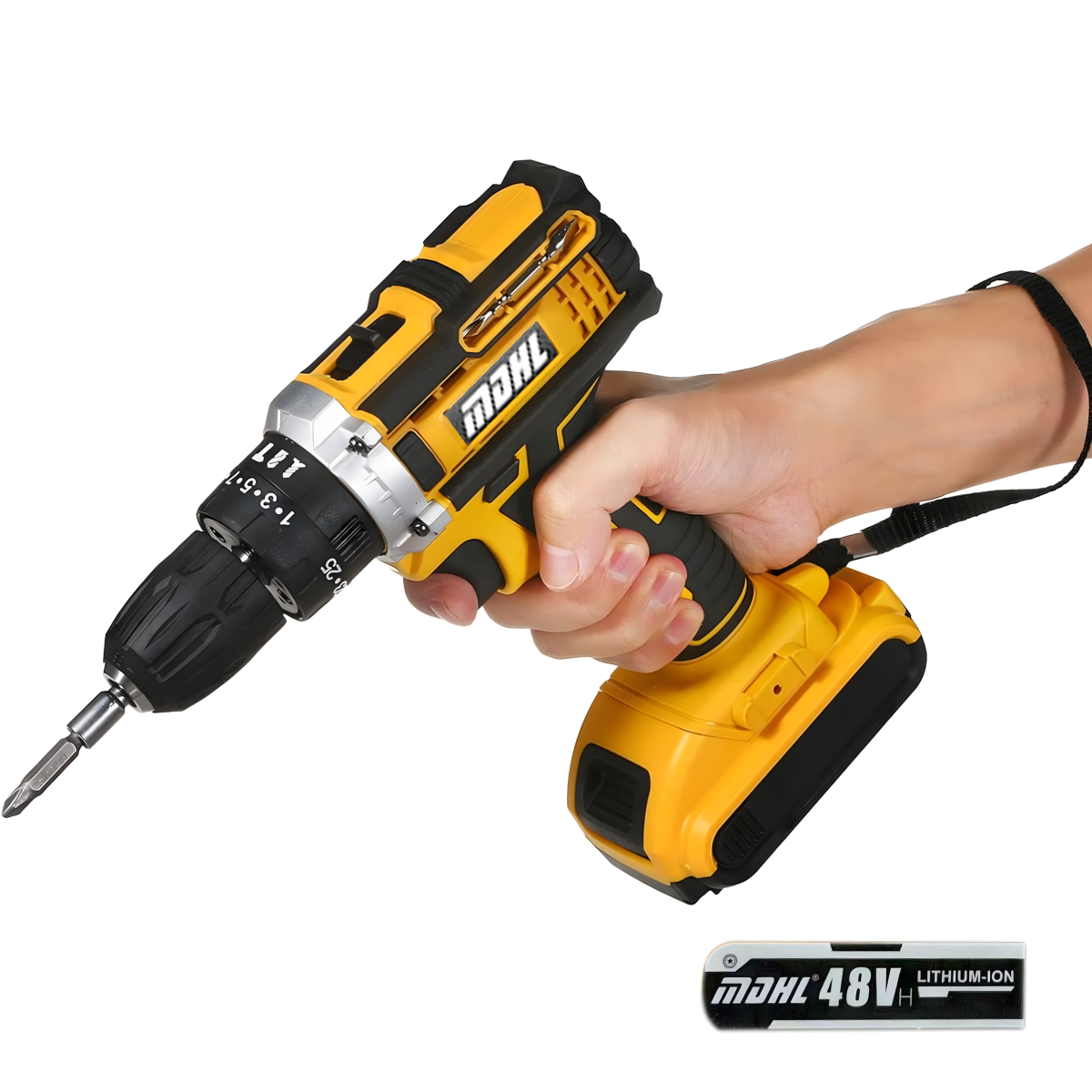 Profesionāla akumulatora urbjmašīna-skrūvgriezis 48V ir uzticams instruments urbšanai un skrūvēšanai dažādos materiālos – no koka, metāla līdz pat betonam un ķieģeļiem. Aprīkota ar 2 akumulatoriem 6500 mAh, 35 Nm griezes momentu un LED apgaismojumu, tā nodrošina ērtu un efektīvu darbu jebkuros apstākļos.
