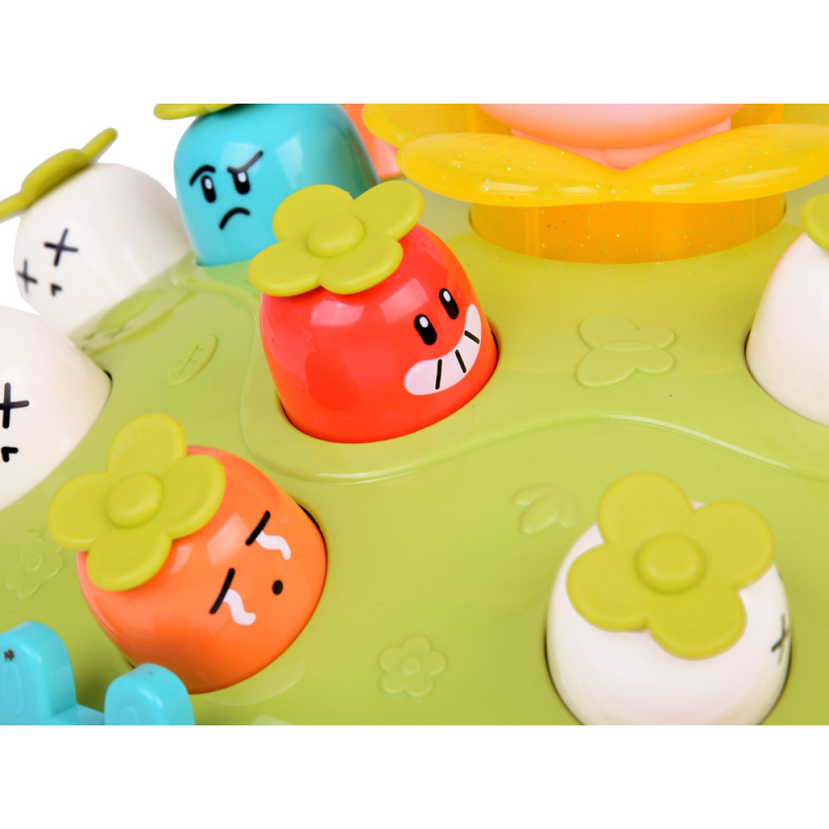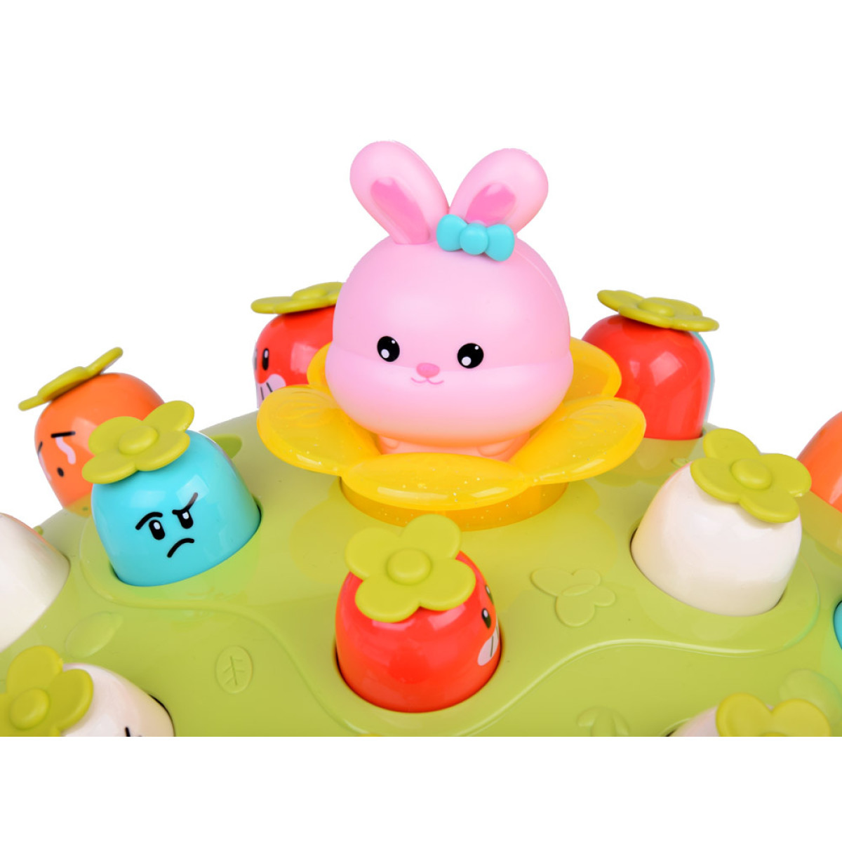 Uz apaļas platformas, kas atgādina zaļu pļavu, atrodas divi līmeņi krāsainu burkānu, kopā 14 burkāni. Katram burkānam ir atšķirīga mimika. Centrā, augšpusē, ir dzeltens zieds ar izvirzītu elementu, kuru nepieciešams nospiest, un pēc tam ievietot un pagriezt tur trusi.