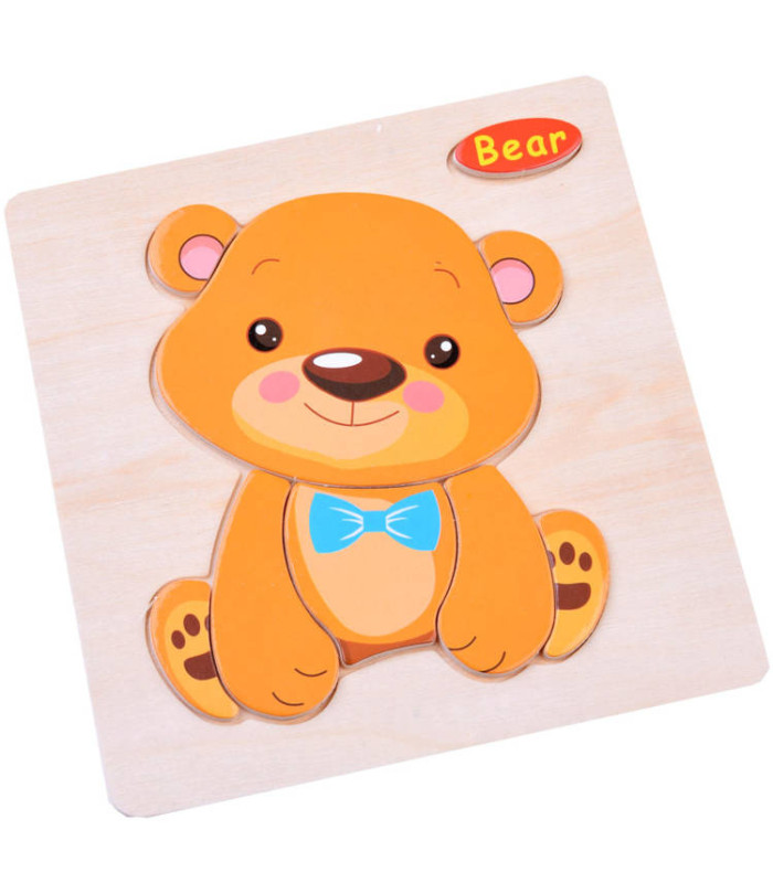 Izglītojošas koka puzles ir lieliska izvēle bērniem no 3 gadu vecuma. Komplektā ir dzīvnieku attēli, un bērni var pakāpeniski saskaņot formas, lai izveidotu burvīgu lācīti. Viena planšete ļauj salikt vienu dzīvnieku.