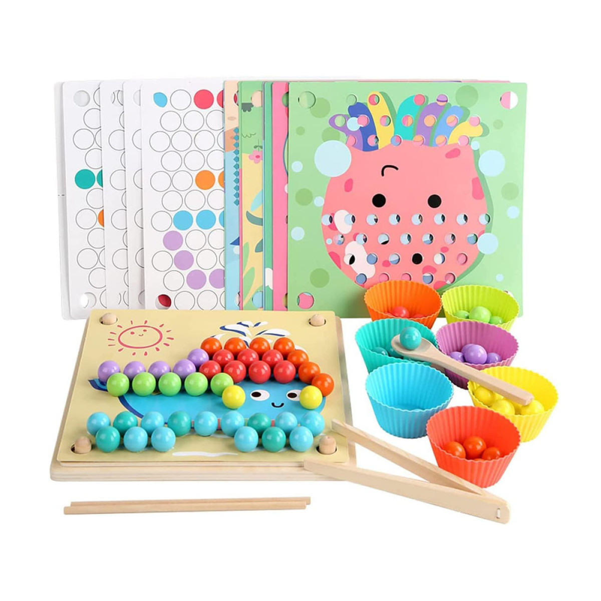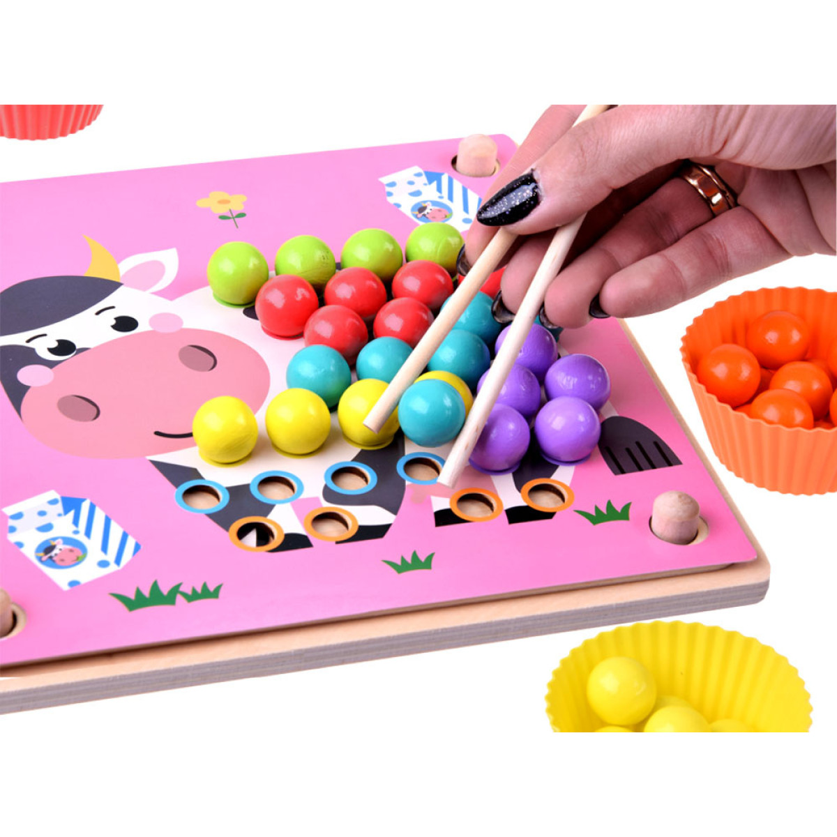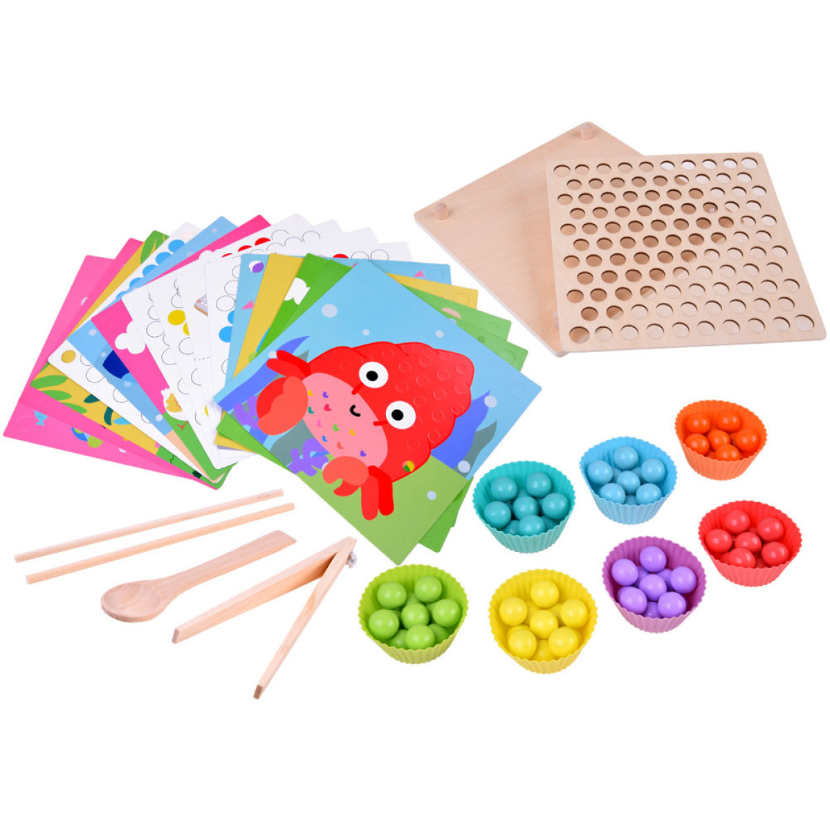Montessori izglītojošā mozaīka ar koka bumbiņām ir lieliska rotaļlieta bērniem, kas nodrošina izklaidi un prāta treniņu. Priekšrocības un ieguvumi: