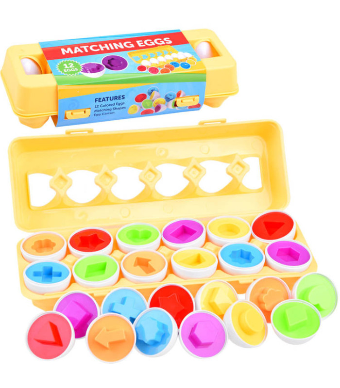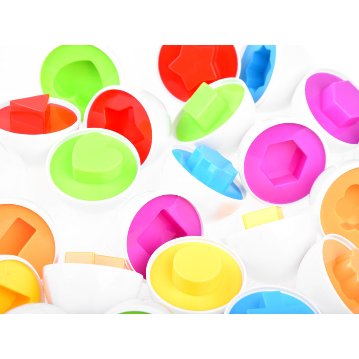Olas ar formām ir lieliska rotaļlieta mazajiem, nodrošinot stundas radošas spēles. Olu iekšpusē, nevis dzeltenums, ir 6 krāsas (dzeltens, oranžs, sarkans, zaļš, rozā, zils), un katrai olai ir atšķirīga forma (zvaigzne, sirds, aplis, kvadrāts). Spēles mērķis ir savienot divas pusītes pēc formas un krāsas, lai ola būtu pilnīga.