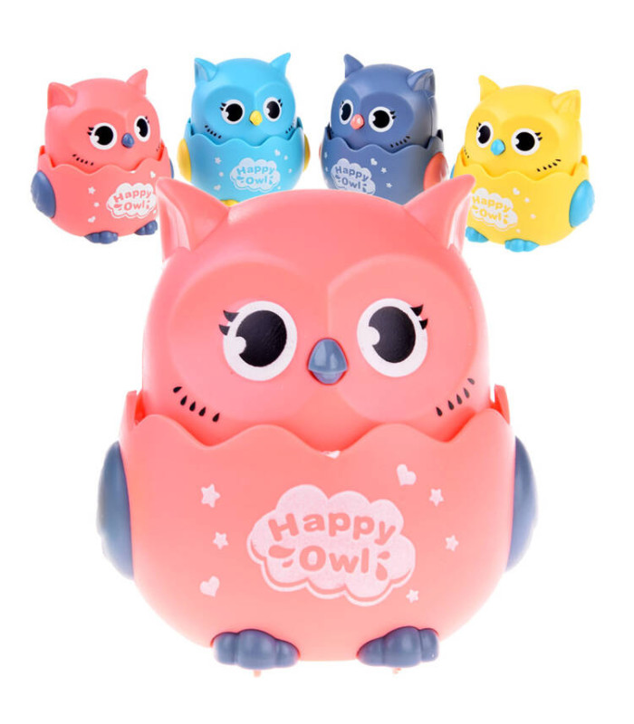 Burvīgā krāsainā pūce noteikti piesaistīs ikviena mazuļa uzmanību. Pūce ir pilnībā izgatavota no plastmasas, tai ir lielas melnas acis un mazs knābis. Pūce pārvietojas, izmantojot mazus riteņus, kas atrodas putna apakšā. Vienkārši novietojiet to uz līdzenas virsmas, nospiediet galvu uz iekšu, un rotaļlieta ātri aizritēs uz priekšu. Pūce lieliski noder arī kā antistresa līdzeklis. Pagriežot putna galvu, dzirdēsiet rīboņu.