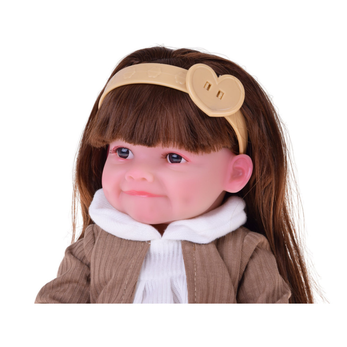 - Veselīgs smaids: lelle izskatās draudzīga un aicina uz rotaļām.