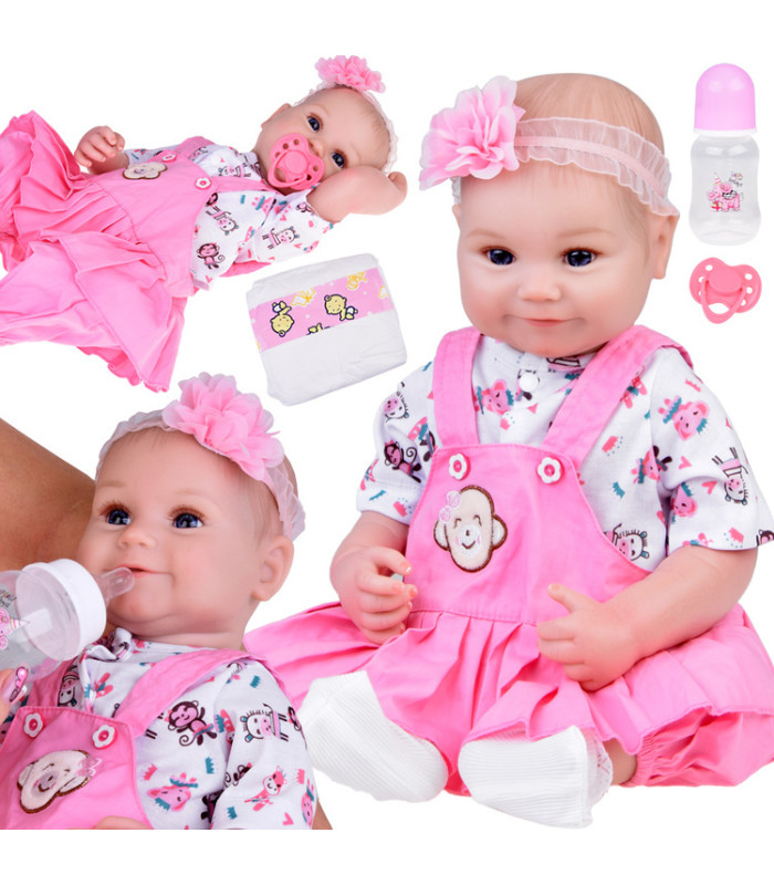 Mīksta lelle bēbis 50 cm ar pudelīti un pamperu