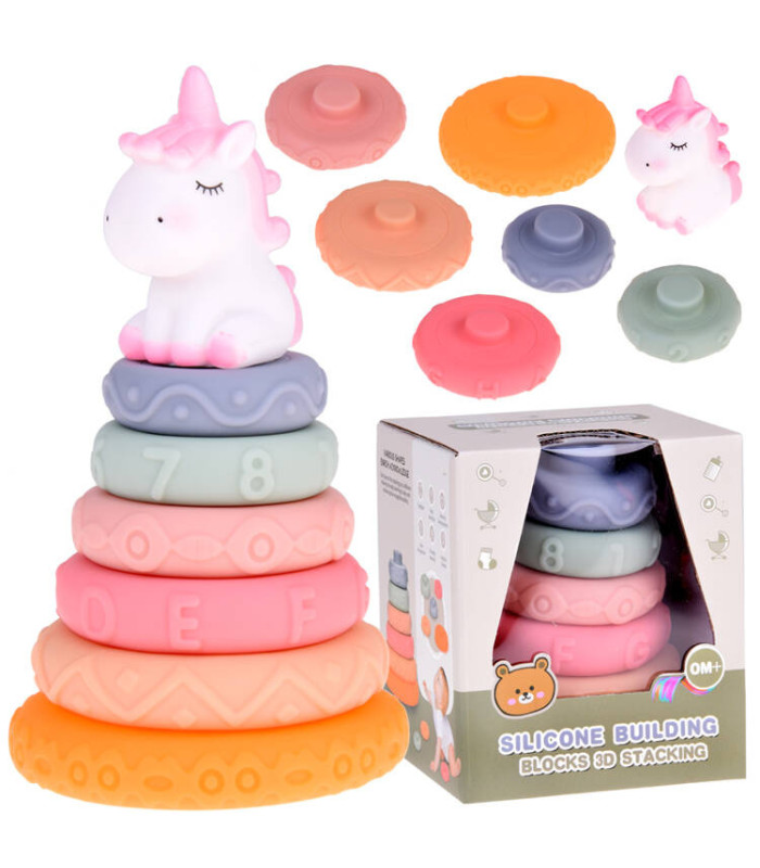 Šī rotaļlieta ir paredzēta mazuļiem. Tā sastāv no vienradža un 6 gredzeniem, kas uzliekas viens uz otra. Gredzeni ir rūpīgi izgatavoti no mīkstas, drošas gumijas, kas lieliski der dažādām spēlēm. Katram gredzenam ir unikāls, teksturēts raksts, kas nodrošina dažādus taustes stimulus, kas veicina bērna taustes sajūtas attīstību.