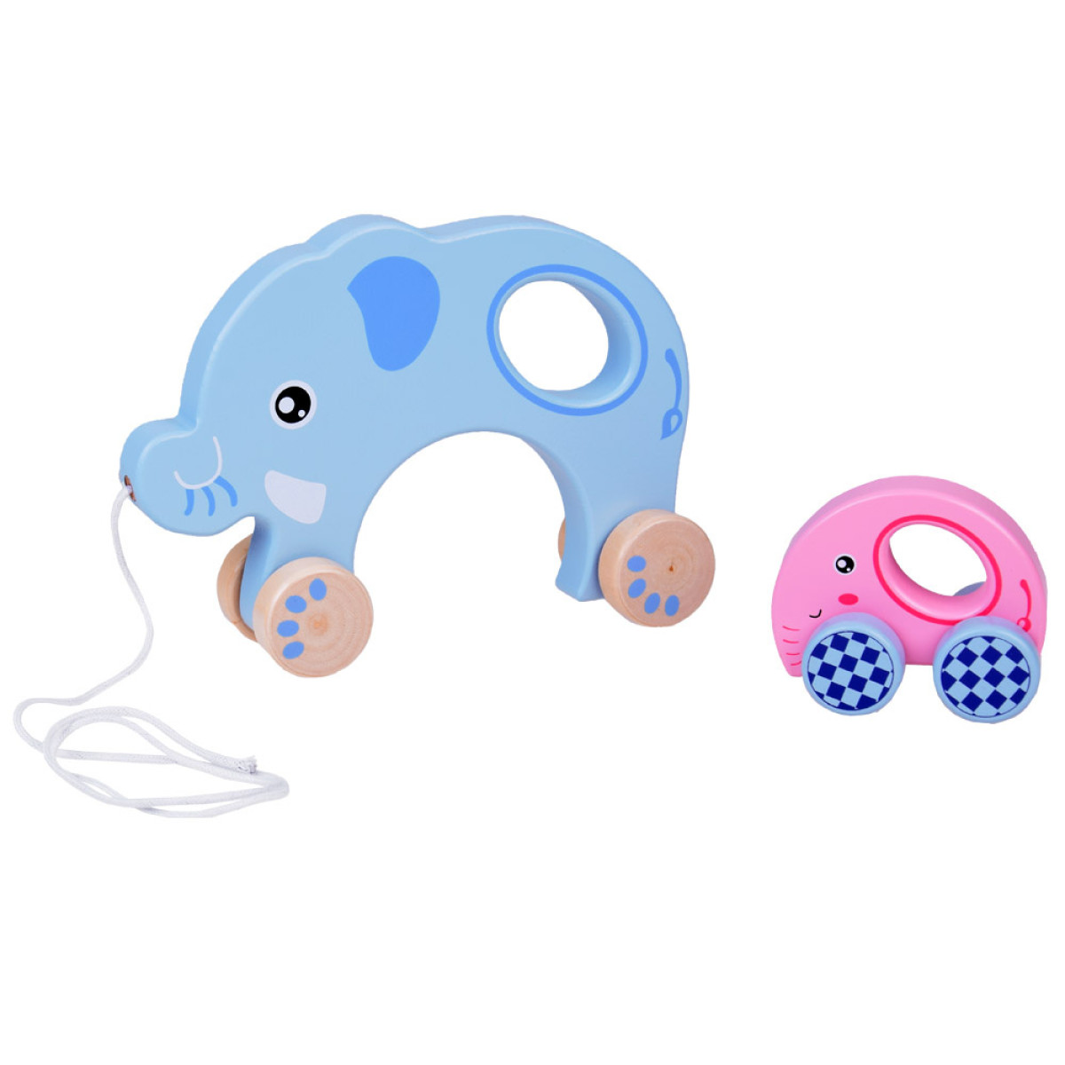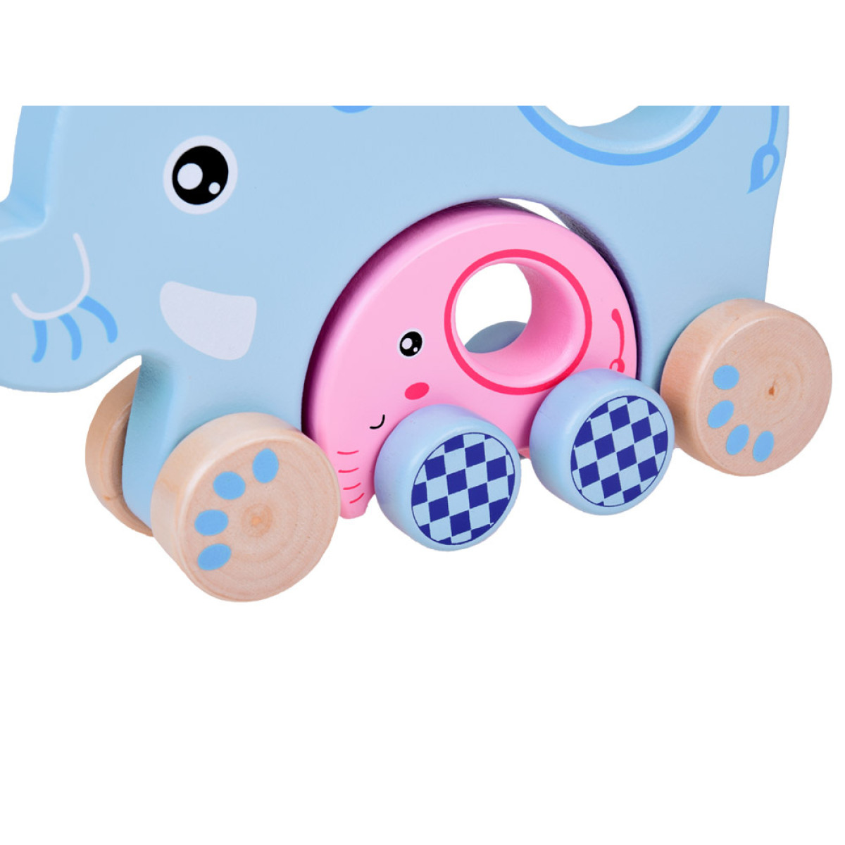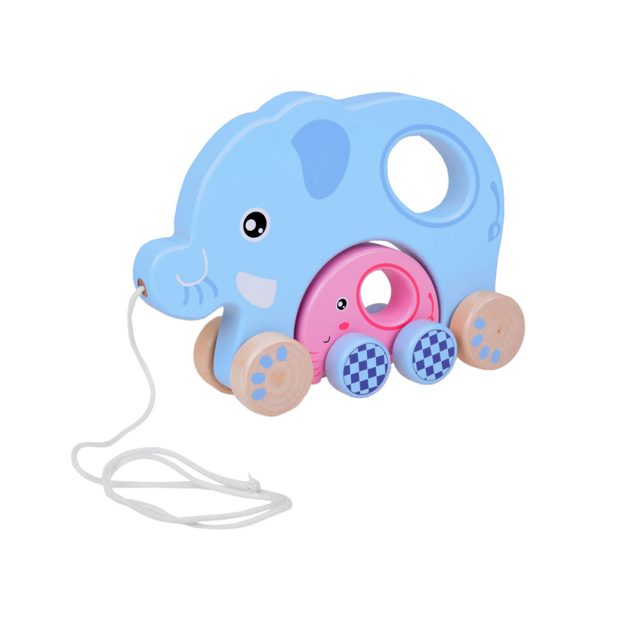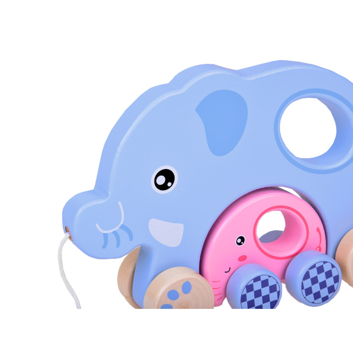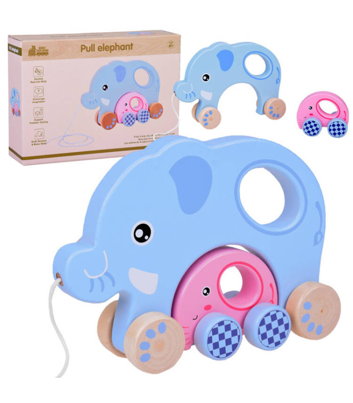 Jauka zilonīšu ģimene uz riteņiem ir piedāvājums katram bērnam. Zilonīši izgatavoti no koka brīnišķīgās pasteļkrāsās. Tie ir aprīkoti ar riteņiem, caurumu mazajām rociņām un auklu vilkšanai. Tā ir lieliska rotaļlieta ikvienam mazulim, kas sāk savu ceļojumu ar staigāšanu. Šis jaukais pasteļzilonītis ar mazo zilonīti uz riteņiem ir lieliska rotaļlieta, kas palīdz mazulim mācīties staigāt. Rotaļlieta izgatavota no koka zilā un rozā krāsā ar jauku sejiņu, kas piesaistīs katra bērna uzmanību. Vilkšanas laikā uz četrām riteņiem mazais zilonītis seko līdzi mammai.