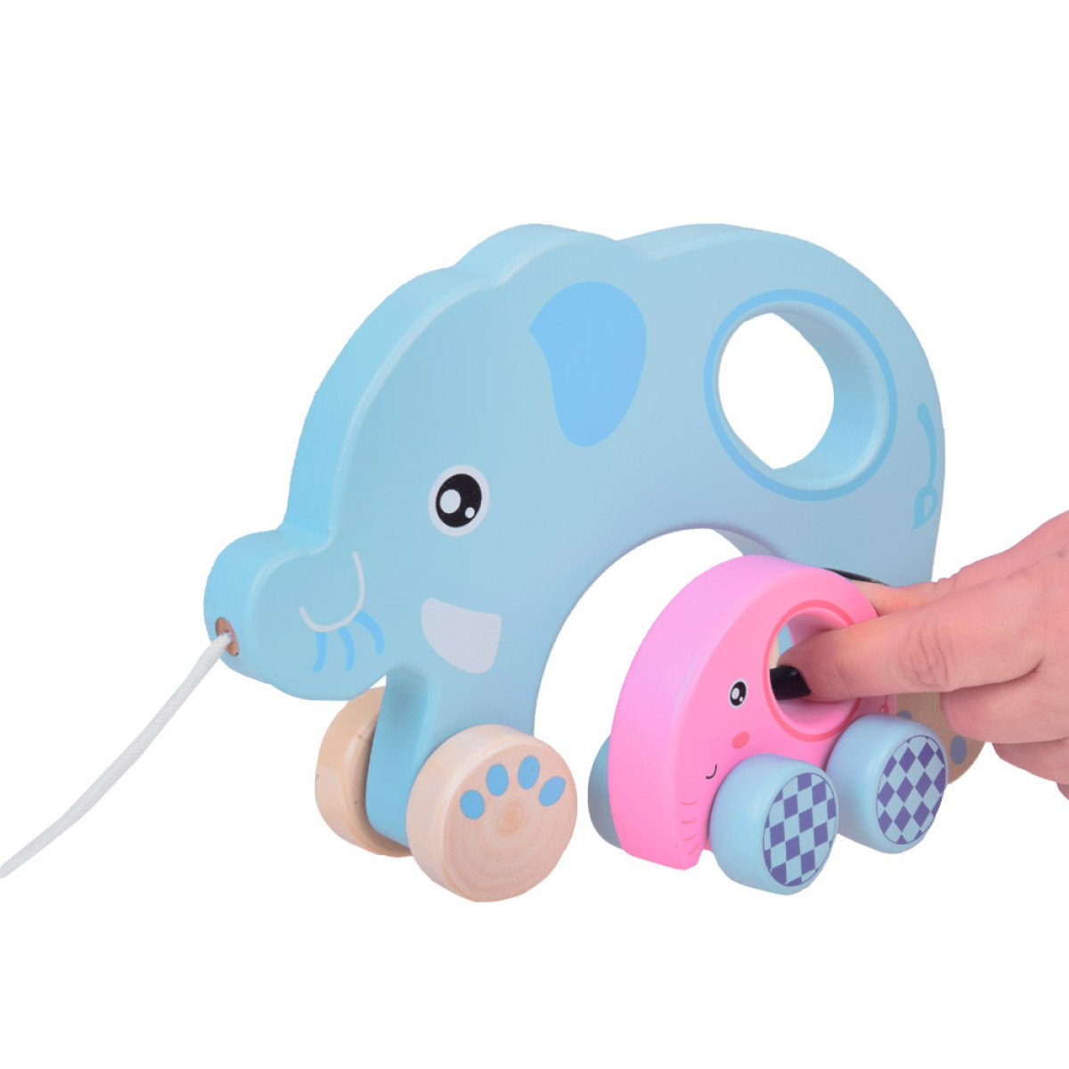 Jauki zilonīšu ģimene 2in1 koka zilonītis ar riteņiem