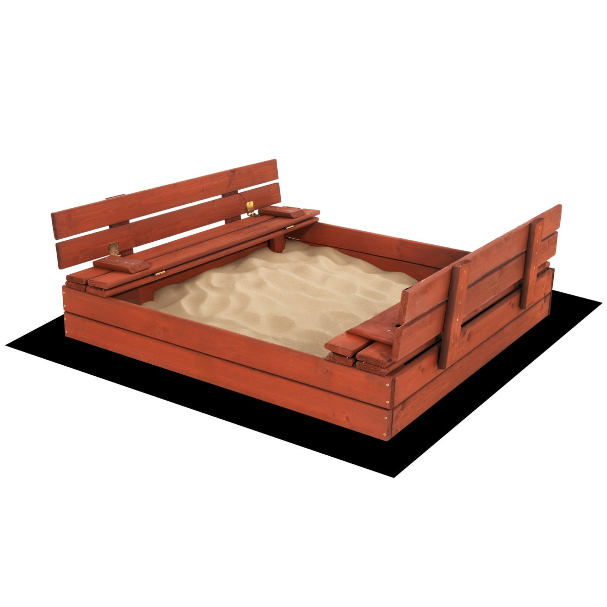 Slēdzama smilšu kaste ar soliņiem Springos SBP120SET02 120x120 cm, izgatavota no impregnēta koka, komplektā ar plēvi un apakšklāju.