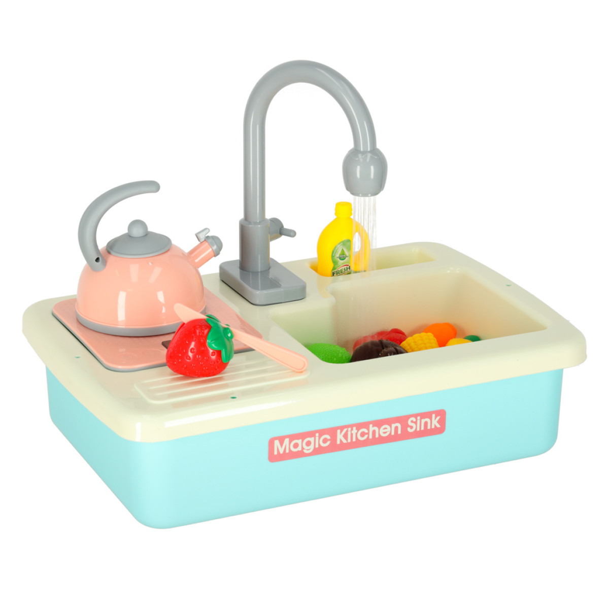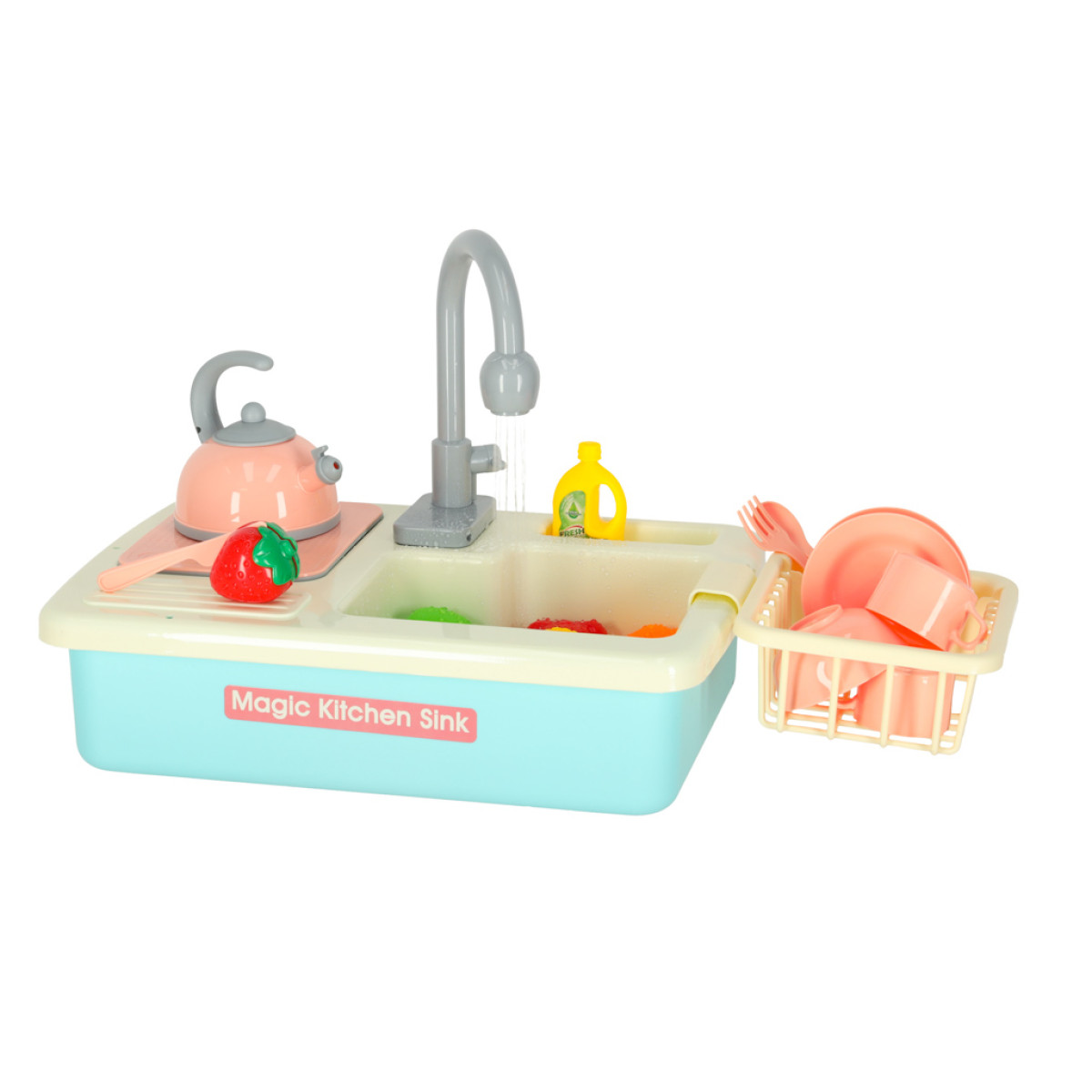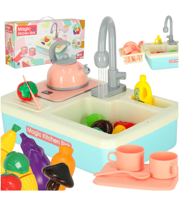 Zilā bērnu izlietne ir unikāls virtuves komplekts, kas pārveido ikdienas uzdevumus par aizraujošu spēli. Rotaļu izlietne darbojas gandrīz kā īsta – ievietojot divas AA baterijas, sūknis aktivizē ūdens cirkulāciju, ļaujot bērnam mazgāt traukus un baudīt reālistisku pieredzi.