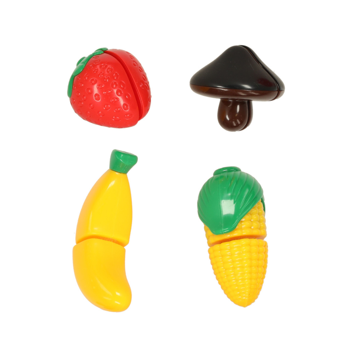 - Plastmasas piederumi (trauku mazgāšanas līdzeklis, tomāts, laims, baklažāns, banāns, zemeņu, kukurūza, sēne, burkāns)