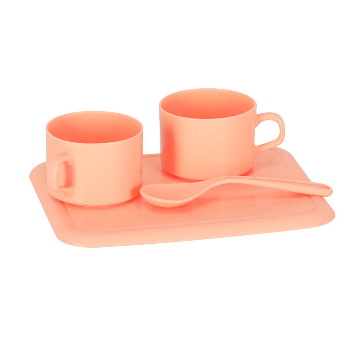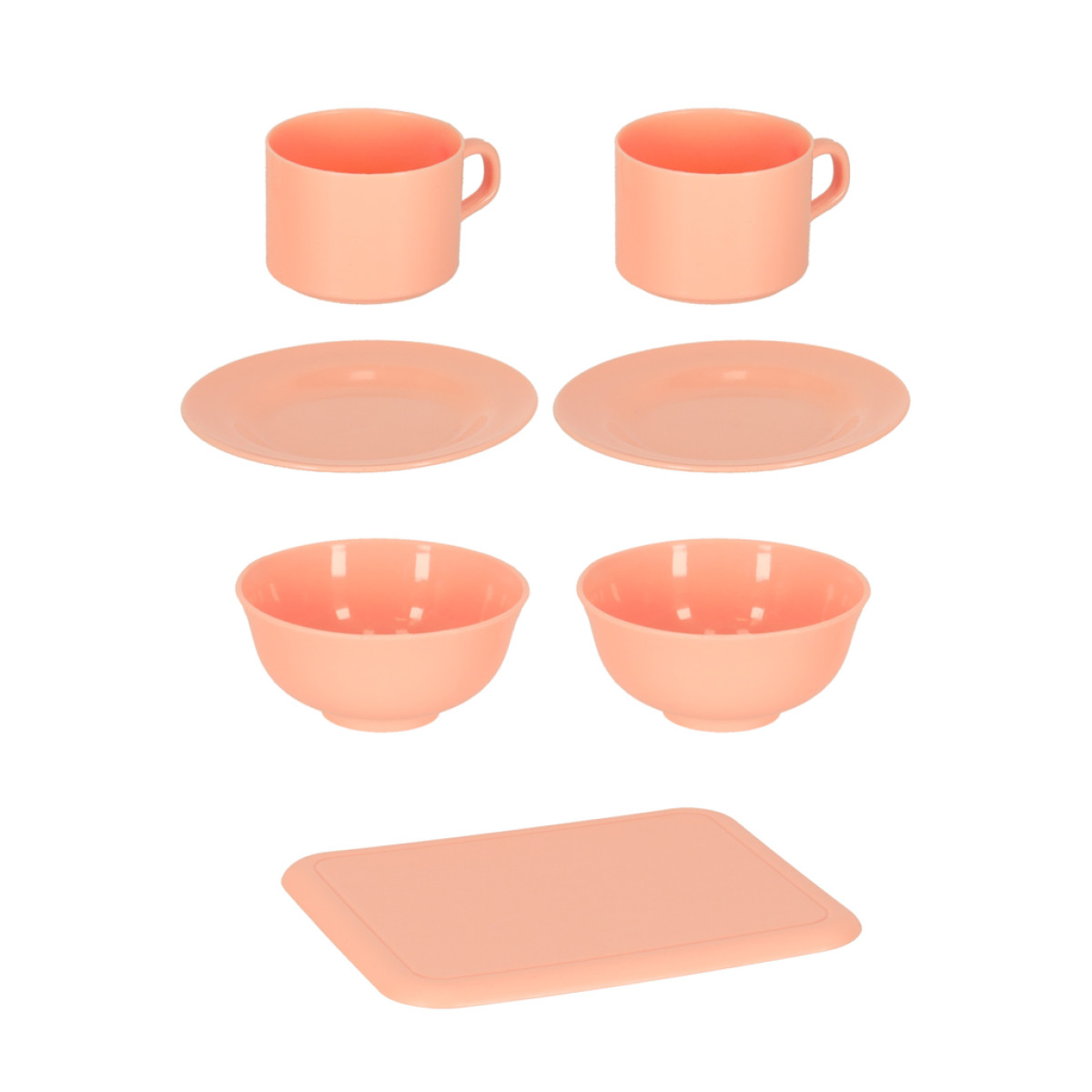 - Trauku un galda piederumu komplekts, uz kura bērns var servēt ēdienu un pēc tam to mazgāt.