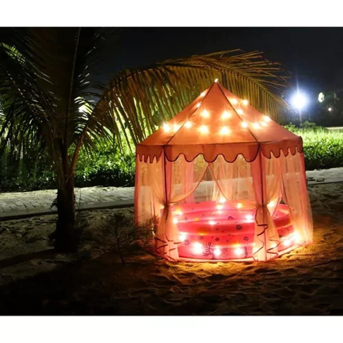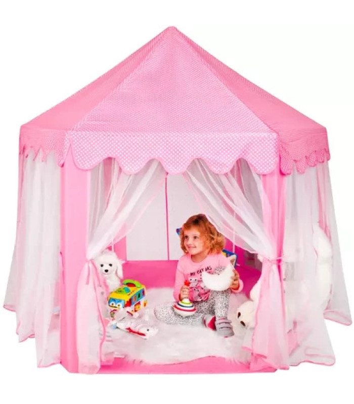 Bērnu telts ir lieliska izklaide stundām ilgi. Materiāla telts bērniem pils formā ir sapņu dāvana katram bērnam. Telts ar sešām ieejām un aizkaru slēgumiem no smalka sieta ļauj paslēpties ar mīļākajām rotaļlietām un ļauties fantāzijām. Pils bērniem būs ideāla vieta emociju un iztēles pilnai spēlei gan mājās, gan ārpus telpām - piemēram, dārzā, piknikā, terasē vai pludmalē.