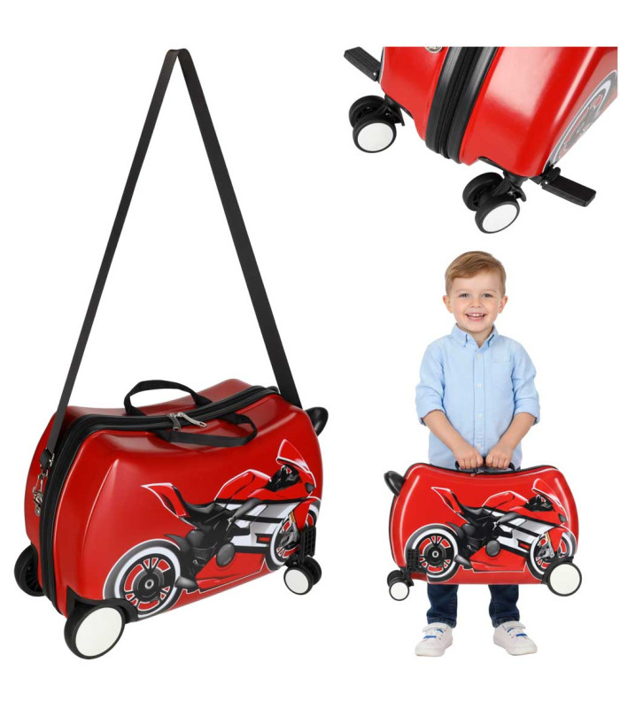 Bērnu ceļojumu koferis uz riteņiem motorollers