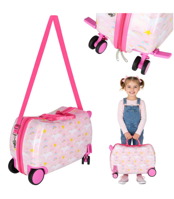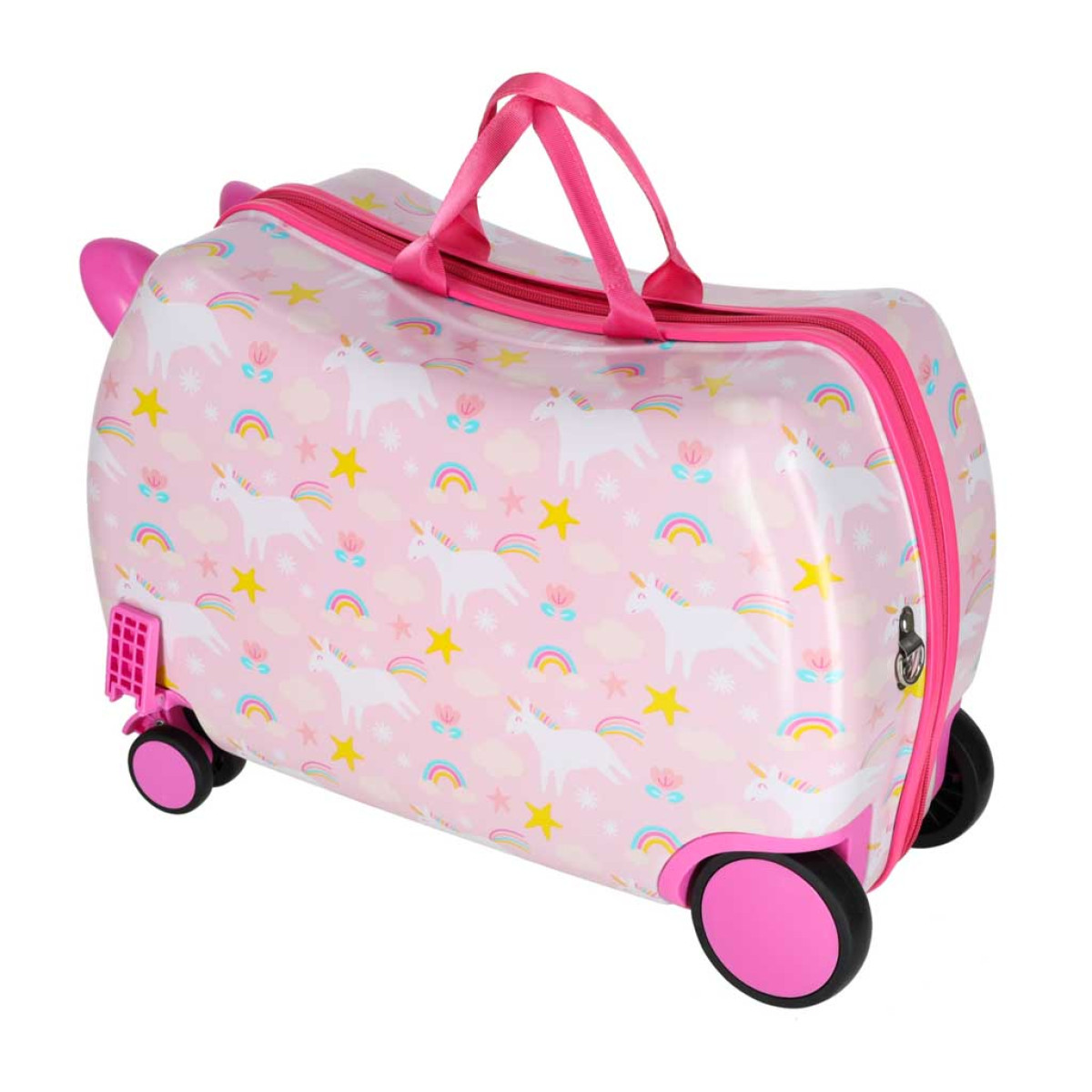 Bērnu ceļojumu koferis uz riteņiem ir lielisks rokas bagāžas risinājums ar vienradža dizainu.