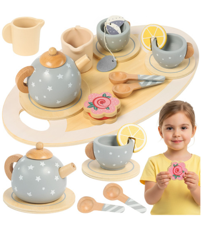 Laiks tējas ballītei pilnai ar smaidiem - pasniedziet bērnam rotaļlietu, kas māca, izklaidē un attīsta! Koka tējas komplekts Kruzzel ar piederumiem bērniem kā dāvana