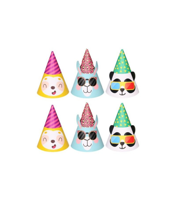 Vakarėlių kepuraitės su gyvūnais 6 vnt.