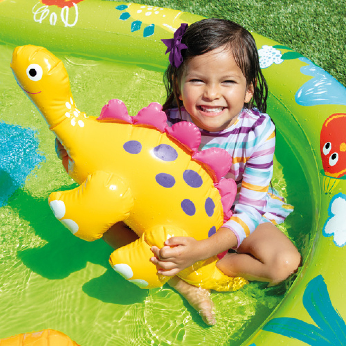 Vai meklējat ideju vasaras izklaidei mājās bez garlaicības jau pēc dažām minūtēm? ūdens rotaļu laukums intex mazais dino pārvērš dārzu par mazu akvaparku ar slidkalniņu, smidzinātāju un drošu, seklu baseinu bērniem no 2 gadu vecuma.