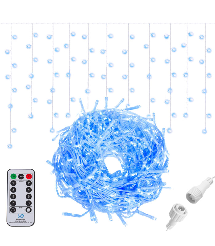 Šis gaismas aizkars ar 300 LED virteni ir ideāls risinājums gan iekštelpās, gan ārpusē. Pieejams lāsteku krāsā, zils. Springos LED dekorācijām ir izmantota LOW VOLTAGE tehnoloģija, kas nodrošina drošu lietošanu, samazinot tīkla spriegumu līdz dažu voltu līmenim. Gaismas diodes neuzkarst un ir drošas pieskaroties, novēršot elektriskās strāvas trieciena risku, pat ja tiek bojāta virtene. Zemsprieguma apgaismojums atbilst Eiropas standartiem un ir marķēts ar CE sertifikātu. Barošanas blokam ir GS kvalitātes zīme, apliecinot augstus drošības standartus.