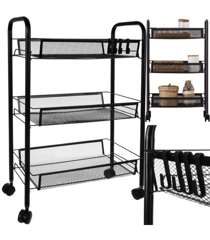 Pārvietojamais plaukts ar trim līmeņiem ir ārkārtīgi praktisks risinājums, ko var izmantot daudzās vietās. Tas ir lieliski piemērots virtuvei, kur tas var kalpot kā papildu vieta garšvielu, katlu, virtuves piederumu vai gatavošanas piederumu uzglabāšanai. Pateicoties mobilitātei, to var viegli pārvietot un novietot ērtā vietā, kas atvieglo telpas organizāciju mazās telpās. Vannas istabā tas būs ideāls risinājums kosmētikas, dvieļu vai tīrīšanas līdzekļu glabāšanai, nodrošinot vieglu piekļuvi nepieciešamajiem produktiem. Plaukts lieliski iekļausies arī birojā kā vieta dokumentiem, biroja piederumiem vai elektronikai. Tā elegantais dizains un funkcionalitāte padara to piemērotu arī viesistabai vai dzīvojamai istabai kā mūsdienīgu mēbeli grāmatu, dekori vai mazu priekšmetu glabāšanai.