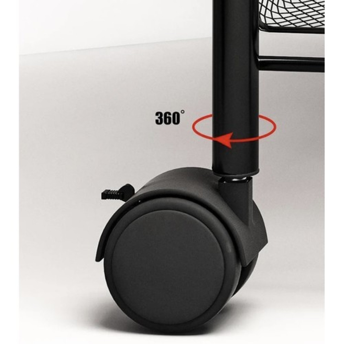 - Plaukts ir aprīkots ar četriem izturīgiem ritenīšiem, kas izgatavoti no augstas kvalitātes PP materiāla, nodrošinot plauktu vieglu un gludu pārvietošanu. Divi ritenīši ir aprīkoti ar bloķētājiem, kas novērš nejaušu plaukta pārvietošanu, kad vēlamies to novietot vienā vietā. Šī funkcionalitāte padara plauktu ne tikai mobilu, bet arī stabilu, kas palielina tā lietošanas drošību.