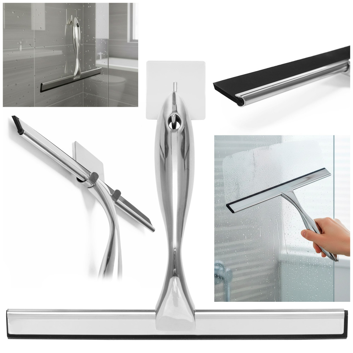 - efektīva ūdens noņemšana – palīdz ātri notīrīt ūdeni no stikla, spoguļiem un flīzēm