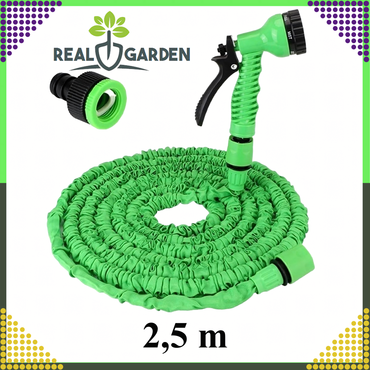 Nesavijusies laistīšanas šļūtene, kas izstiepjas 3 reizes no 2,5 līdz 7,5 m
