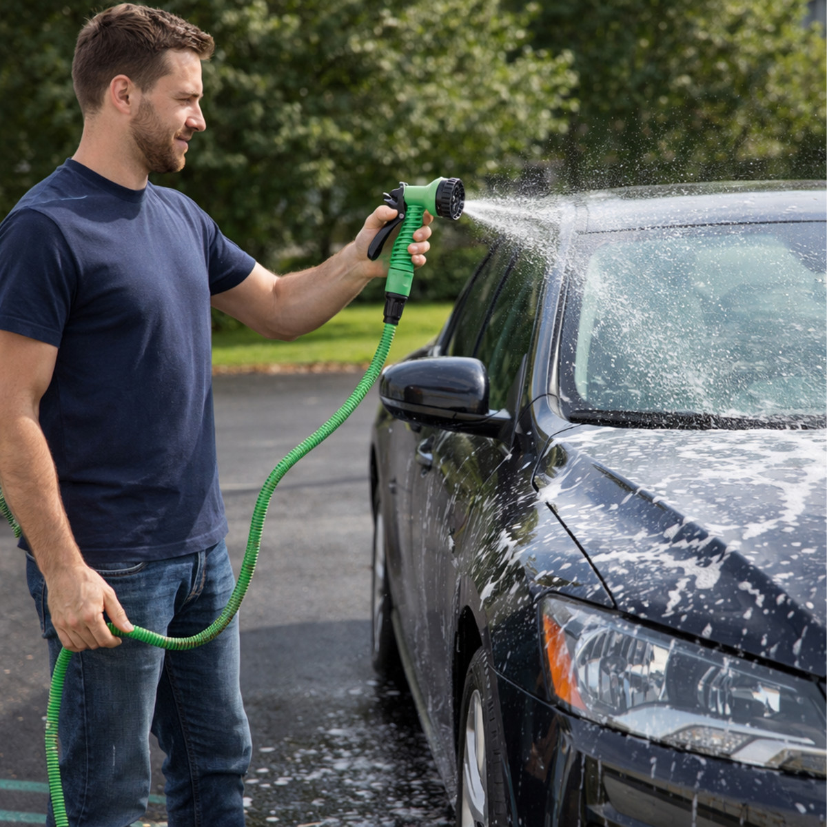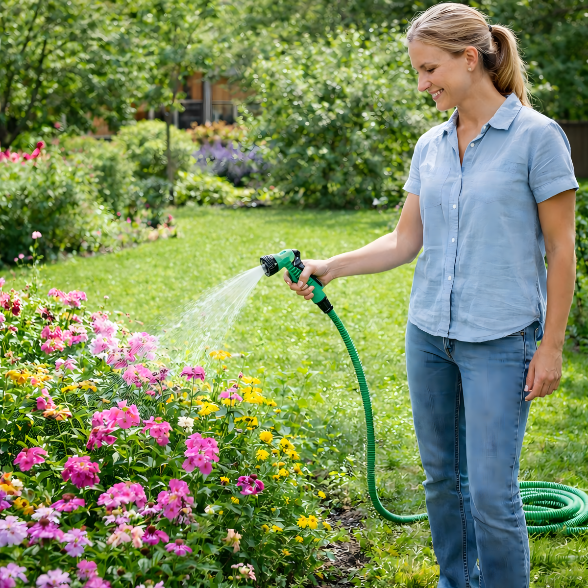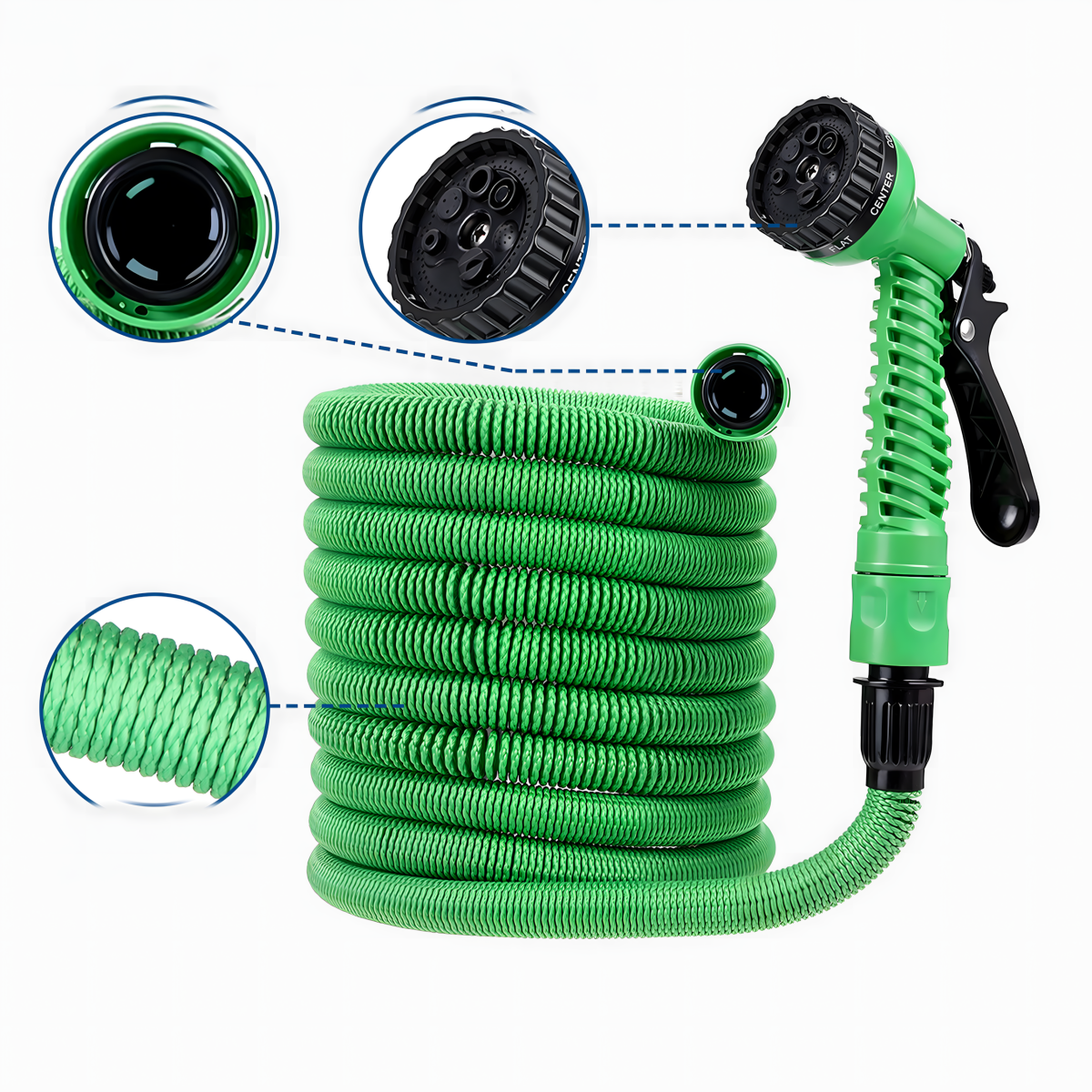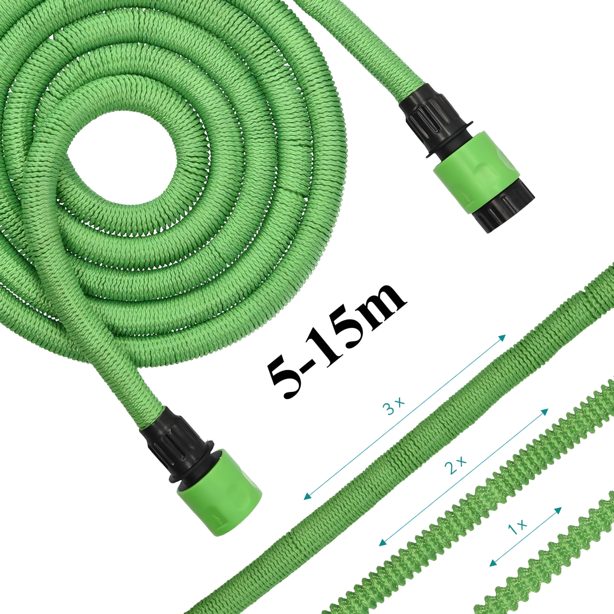 - Pagarinās līdz 15 metriem: Iespēja sasniegt vairākas dārza vietas bez nepieciešamības pārvietot ūdens avotu.