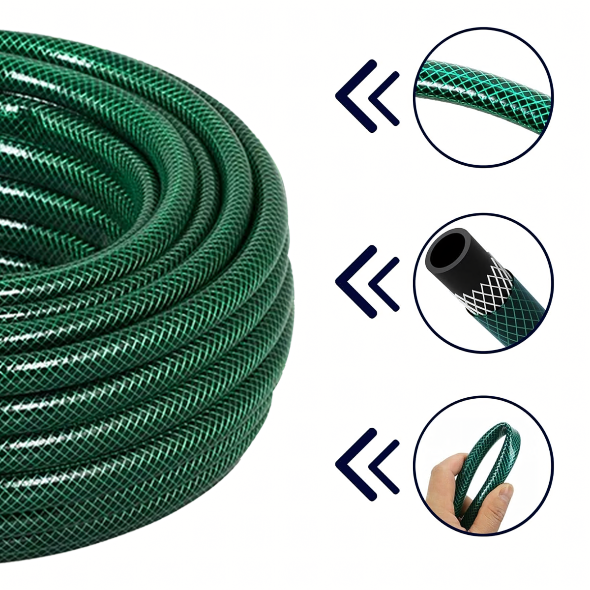 ir izturīgs un universāls risinājums dārza laistīšanai, terases vai automašīnas mazgāšanai. Daudzslāņu konstrukcija nodrošina izturību pret savērpšanu, UV starojumu un bojājumiem, savukārt gludā iekšpuse samazina aļģu uzkrāšanos. Paredzēts lietošanai vairāku sezonu garumā.