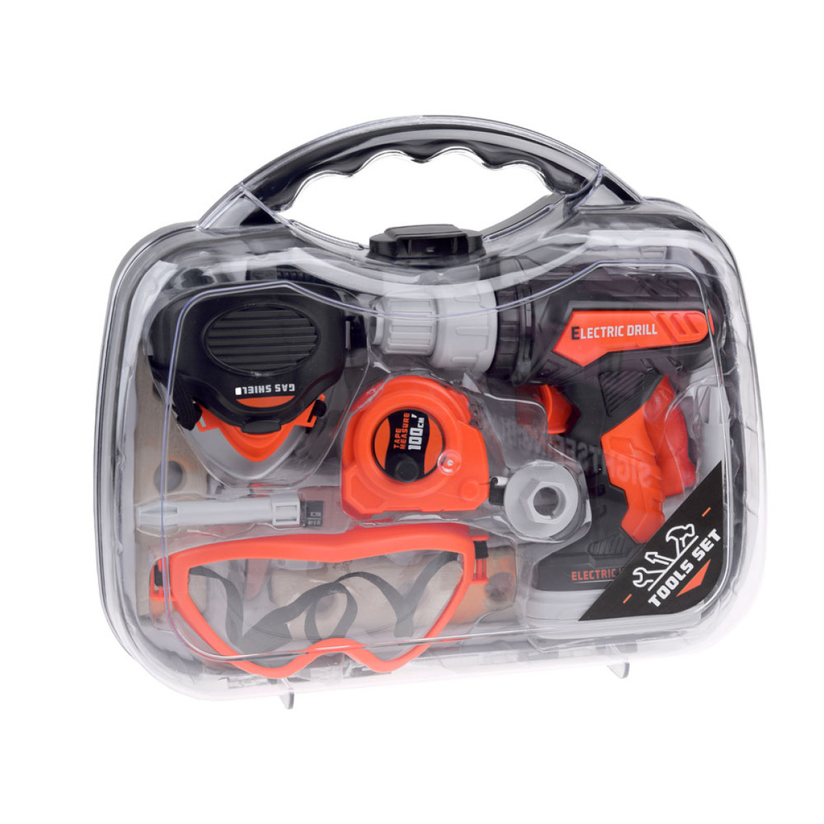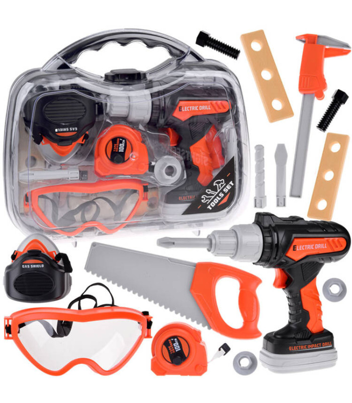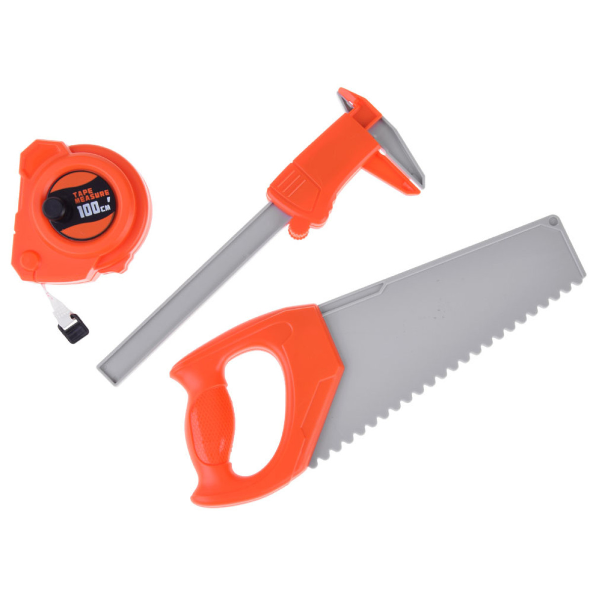 Darbarīku komplekts ir lielisks risinājums katram mazajam mājas palīgam. Skrūvgriezis, metrs, zāģis un aizsargbrilles – viss, kas nepieciešams, lai veiktu nelielus remontus mājās. Skrūvgriezis ir pagriežams abos virzienos, un, uzliekot pareizo uzgali, varēsiet viegli pieskrūvēt vai atskrūvēt skrūves. Mērlente un vernieris palīdzēs precīzi noteikt attālumus un diametrus, savukārt aizsargbrilles pasargās bērna acis. Komplekts izgatavots no plastmasas, tam ir melni pelēks dizains ar oranžiem akcentiem, kas noteikti patiks mazajiem.