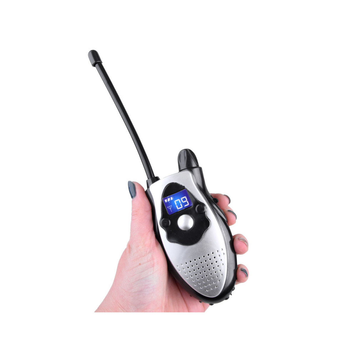 Šis daudzfunkcionālais Walkie Talkie piedāvā izcilu izklaidi gan maziem, gan lieliem rācijas cienītājiem. Ar darba attālumu līdz 150-200m, šis modelis ir vienkārši lietojams un kompakts. Ideāli piemērots spēlēm dārzā, pludmalē vai mežā. Elastīga antena nodrošina izturību pret lūzumiem.