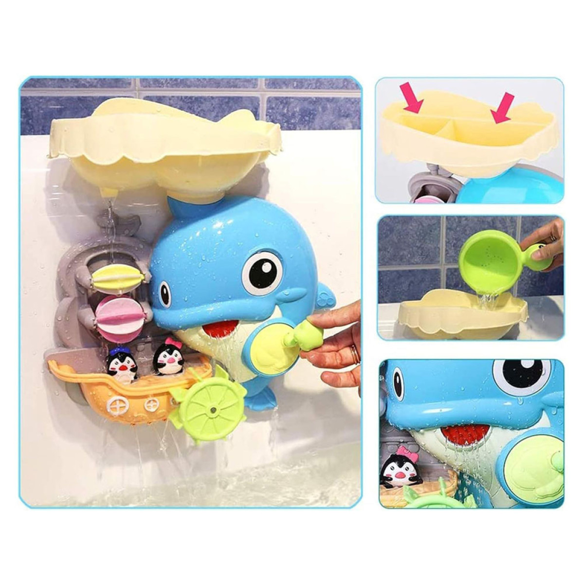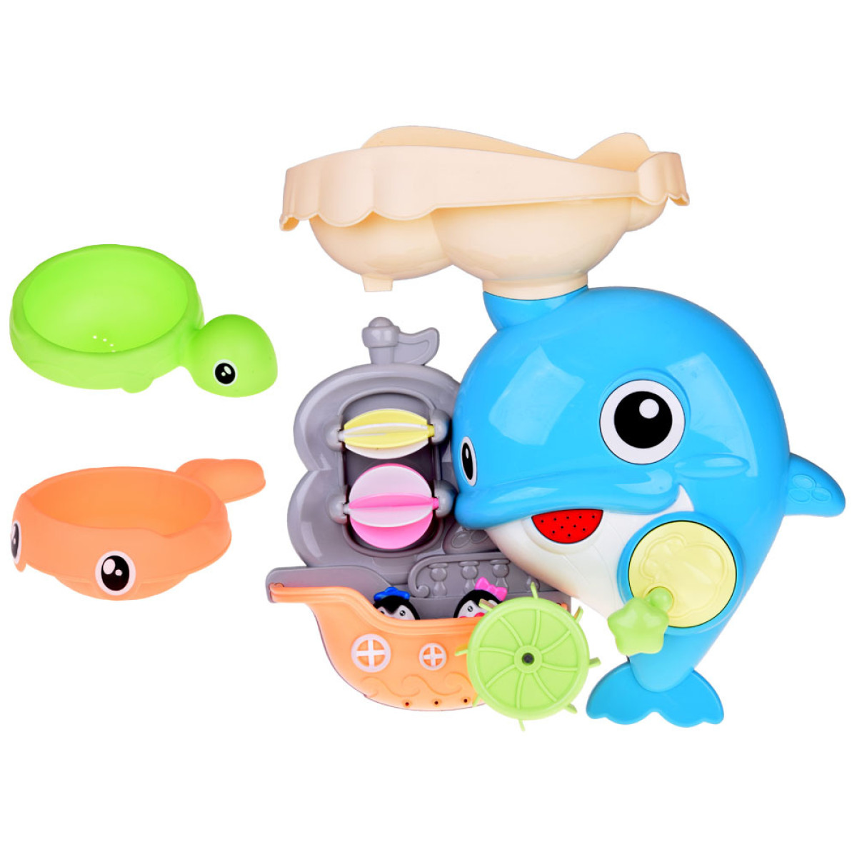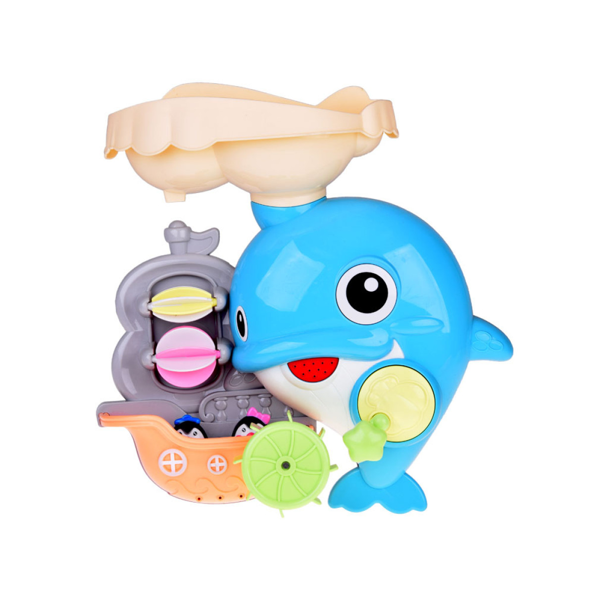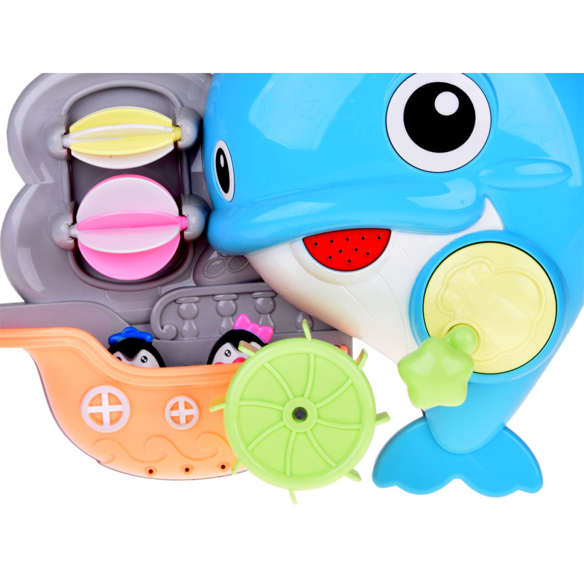 Priecīgs Delfīns vanna rotaļlieta ar laivu un pingvīniem