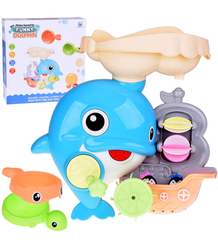 Krāsains Priecīgs Delfīns vanna rotaļlieta ir lieliska izvēle spēlēm ūdenī. Delfīns pievilcīgās krāsās ļauj izdomāt dažādas spēles. Rotaļlieta ir pilnībā izgatavota no plastmasas un satur daudz pārsteigumu. Mute ir caurums ūdens lejšanai, ir ratiņi, acis, pievienota laiva ar maziem pingvīniem. Rotaļlietu var viegli piestiprināt pie gludas virsmas ar komplektā esošajām piesūcekņiem.