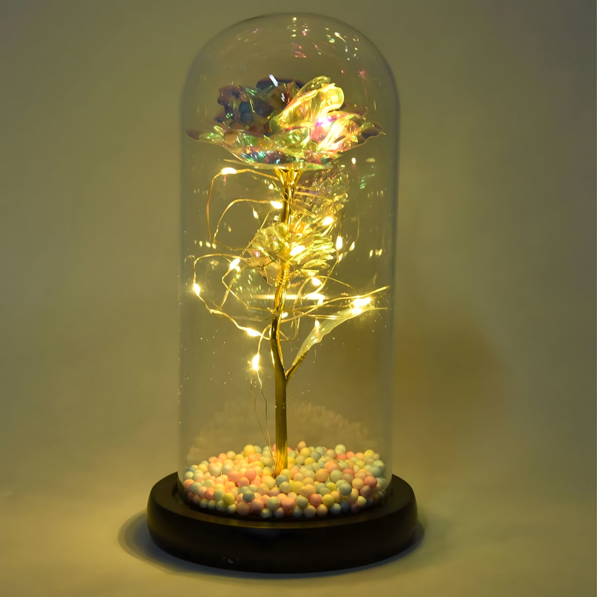 Mūžīgā roze stiklā ar LED apgaismojumu