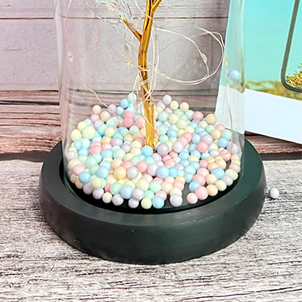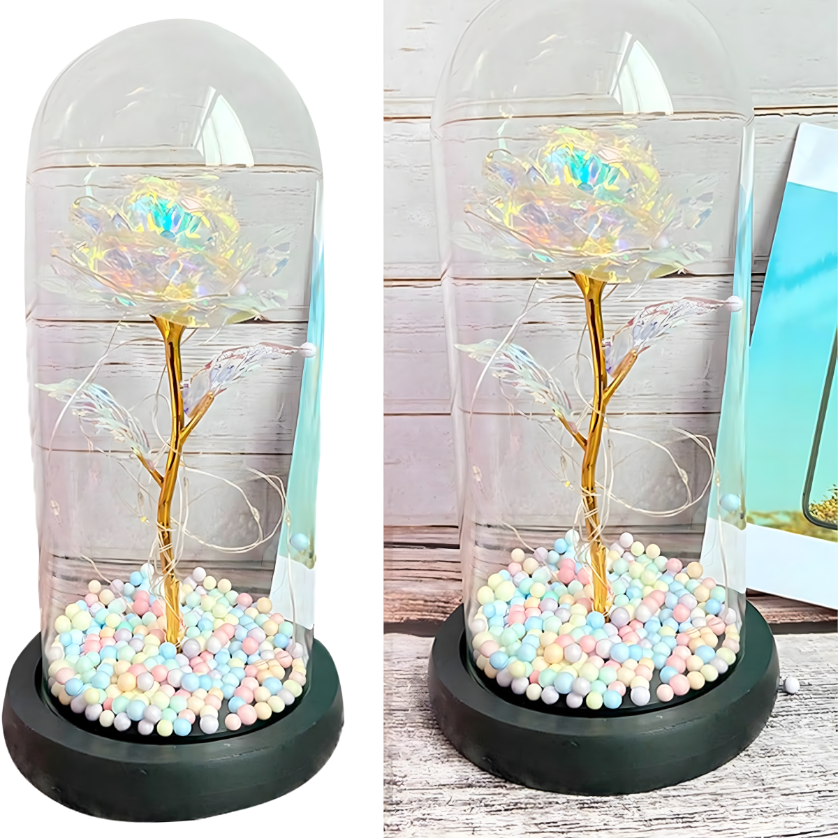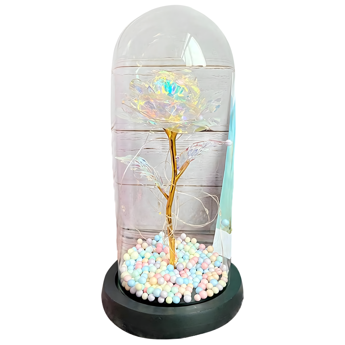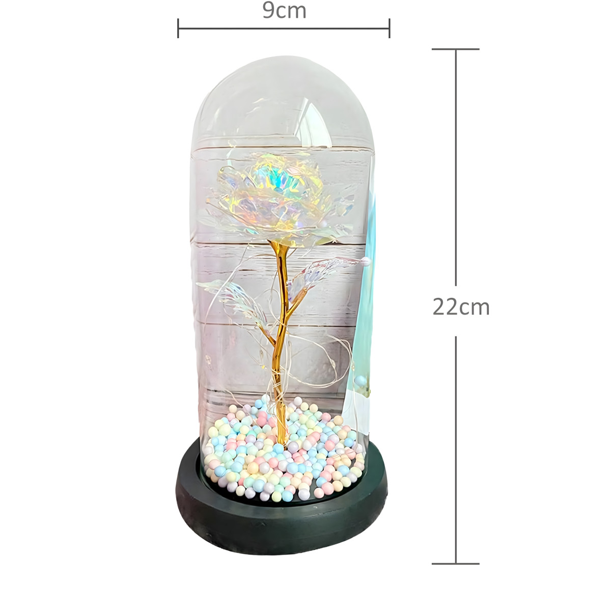 Mūžīgā roze stiklā ar LED apgaismojumu