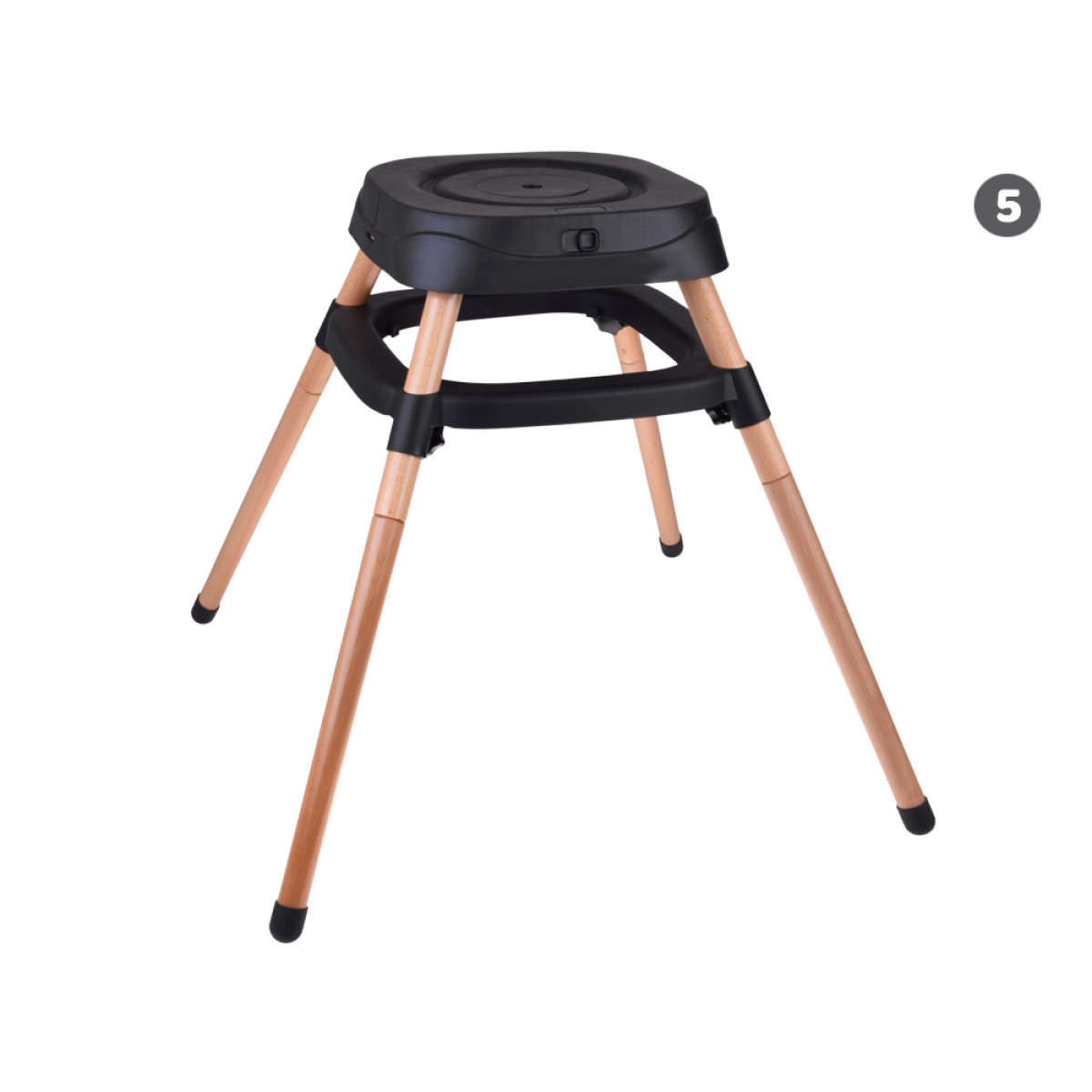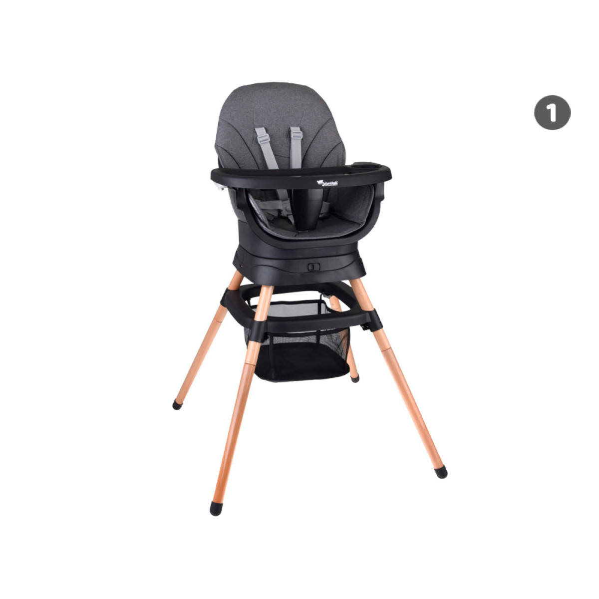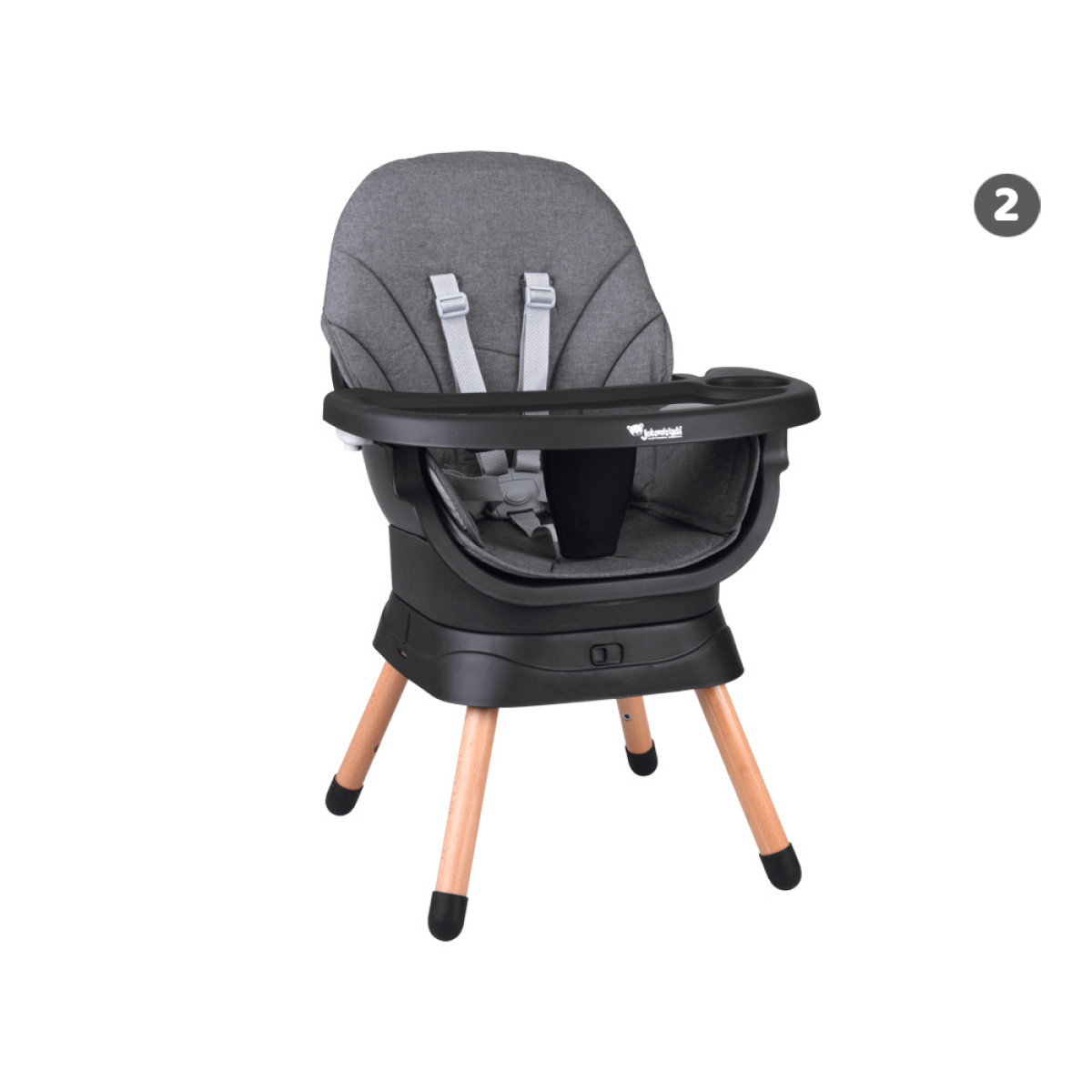 - Krēsls bērnu barošanai - ērts un stabils, ar regulējamu paplāti un drošības jostām, nodrošina komfortu gan bērnam, gan vecākiem. Paplāte ir profilēta, noņemama un viegli tīrāma - to var noskalot zem tekoša ūdens vai ievietot trauku mazgājamā mašīnā.