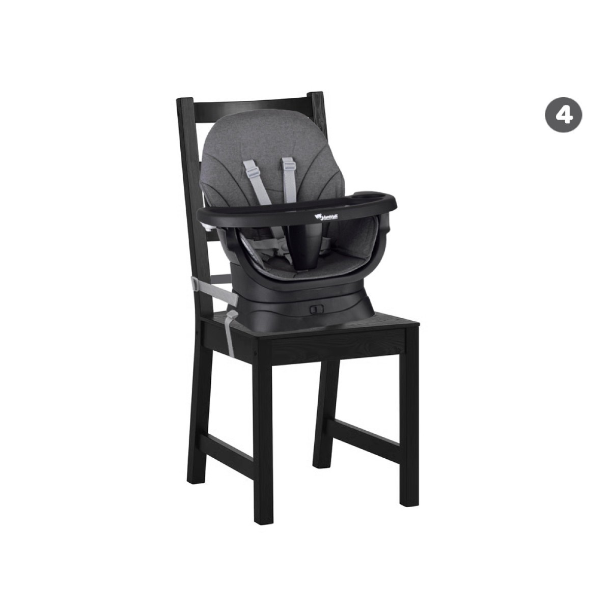 - Pielikums ēdamistabas krēslam - pateicoties stiprinājuma jostām, droši pievienojiet krēsliņu standarta krēslam, lai bērns varētu sēdēt pie galda kopā ar ģimenes locekļiem, mācoties kopīgas ēdināšanas principus.