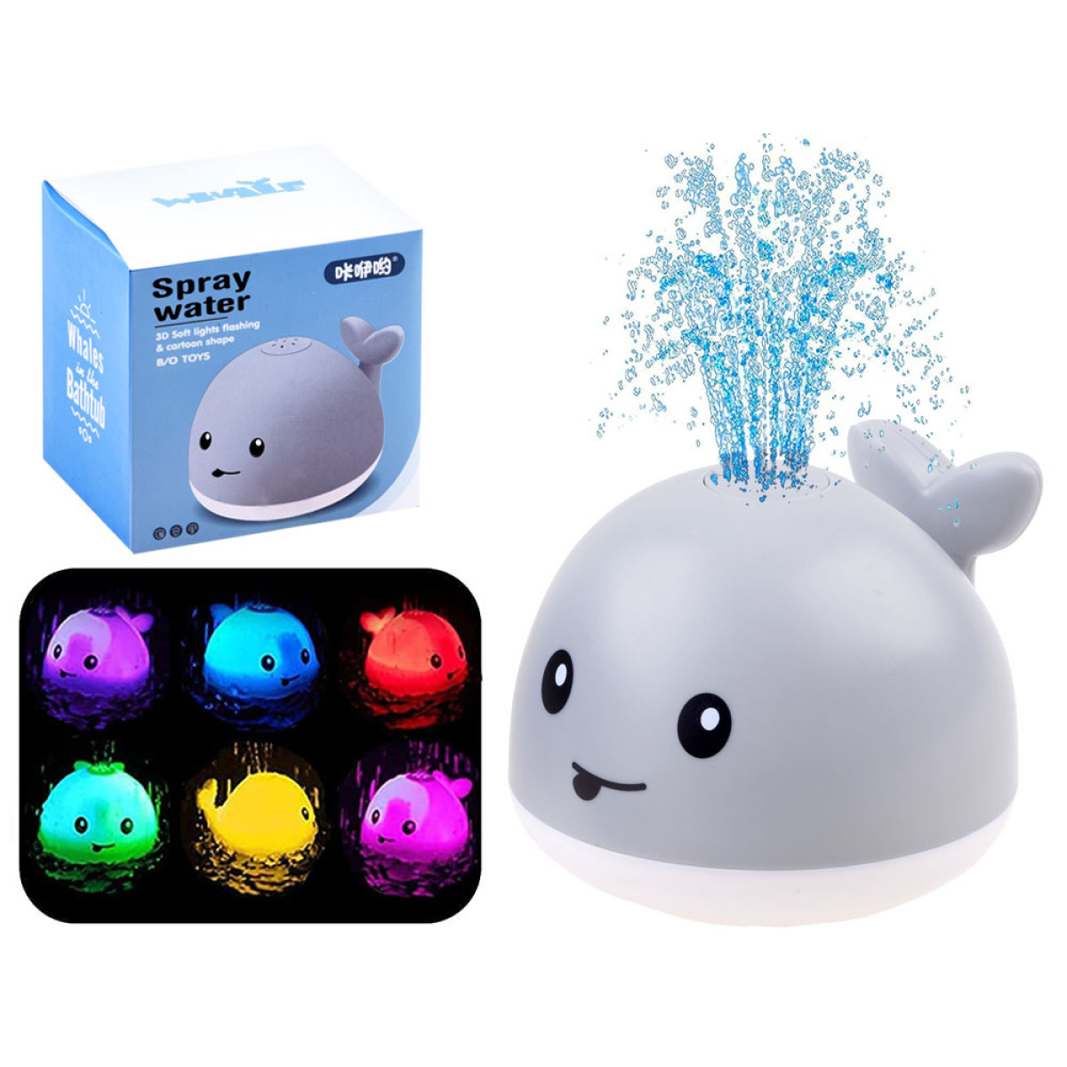 Pēc ievietošanas ūdenī rotaļlieta automātiski ieslēdzas un izveido mini fontānu. Papildu efektu rada krāsainas mainīgas gaismiņas, kas padara rotaļu vēl aizraujošāku. Kompaktais izmērs ļauj rotaļlietu ērti satvert arī mazām bērna rociņām.