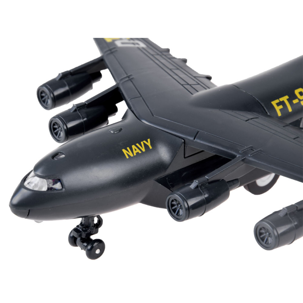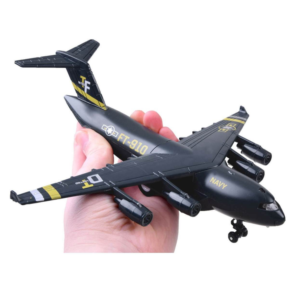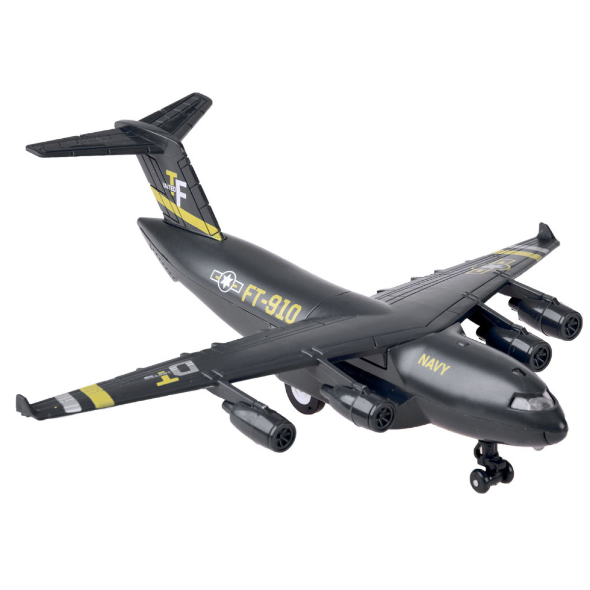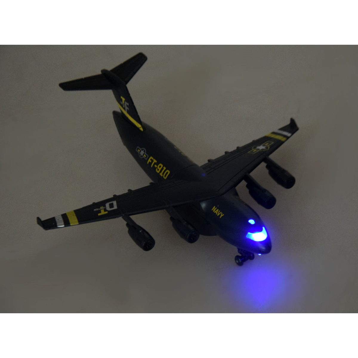 Korpuss ir izgatavots no metāla un plastmasas. Lidmašīnas korpuss ir tumši pelēks ar zelta un sudraba apzīmējumiem. Transporta lidmašīnai ir pull back piedziņas veids – pavelkot rotaļlietu atpakaļ, tā brauc uz priekšu. Nospiežot lidmašīnu uz grīdas, aktivizējas dzinēju skaņa un kabīnes apgaismojums.
