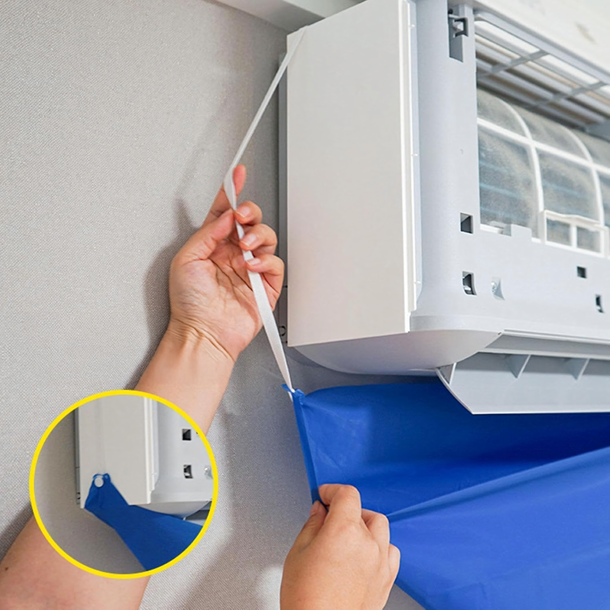 Gaisa kondicioniera tīrīšanas un dezinfekcijas pārvalks ar ūdens novadīšanu