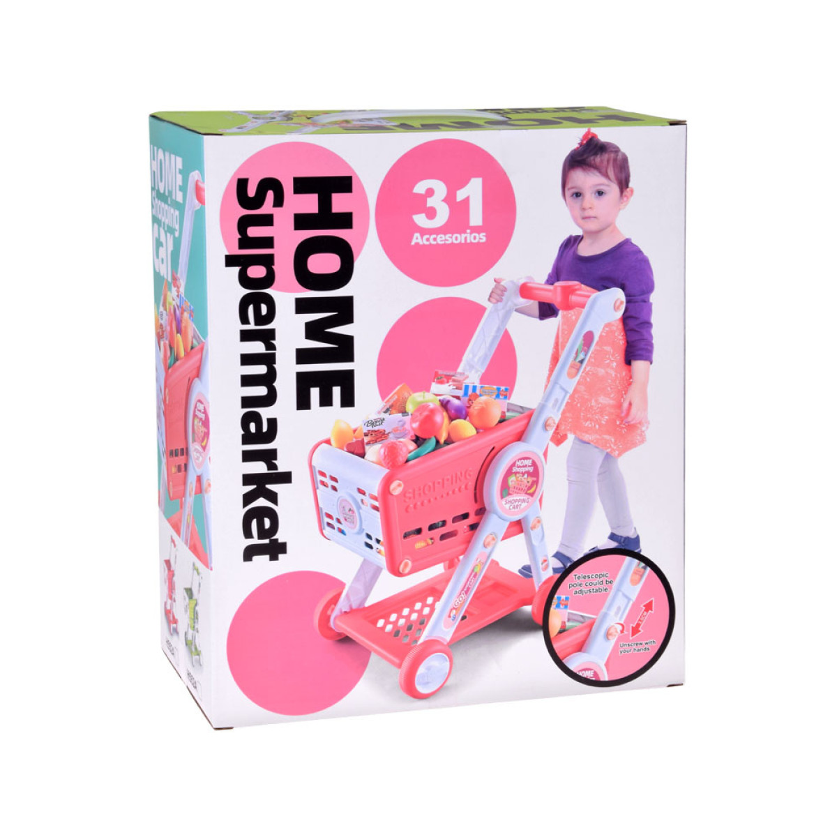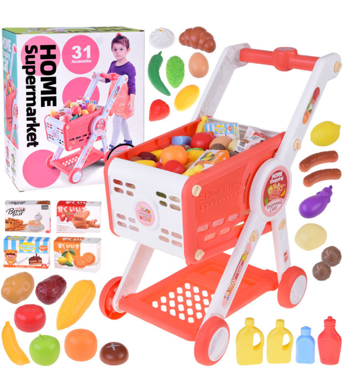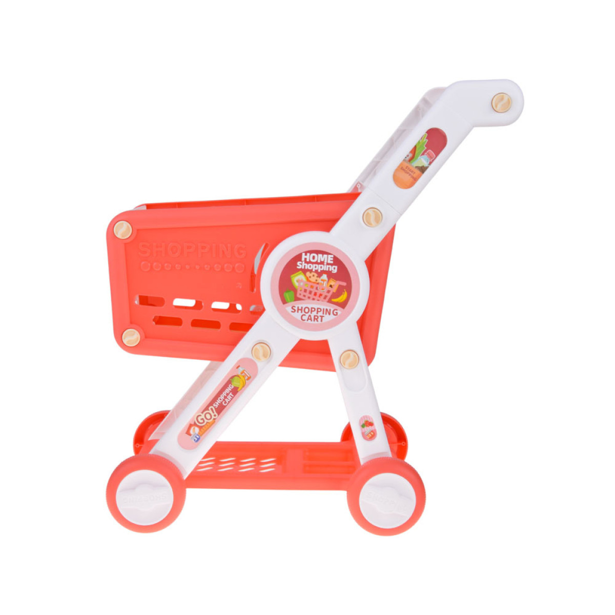 Iepirkšanās ir jautra! Pirms dodaties uz veikalu, sagatavojiet veikalu ratiņus, kas atvieglos jūsu iepirkšanos. Ar ērtiem riteņiem varat viegli pārvietoties pa istabu, un regulējamais roktura augstums ļaus ratiņus pielāgot bērna augumam – tos var pacelt vai nolaist pēc vajadzības. Šī ir lieliska iespēja, kas padara spēli vēl ērtāku.