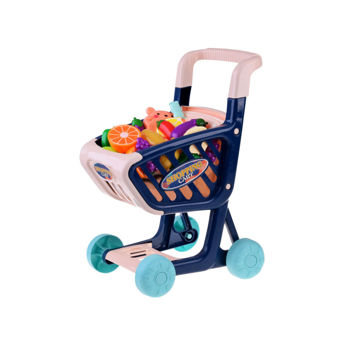 Lielie iepirkumu ratiņi, pilni ar dārzeņiem, ir ideāla rotaļlieta spēlēšanai veikalā. Bērniem patīk atdarināt pieaugušos ikdienas darbībās, tāpēc šie ratiņi noteikti būs iecienīti jebkuram mazajam. Ratiņi ir pilnībā izgatavoti no plastmasas, ar platiem riteņiem un ērtu rokturi.