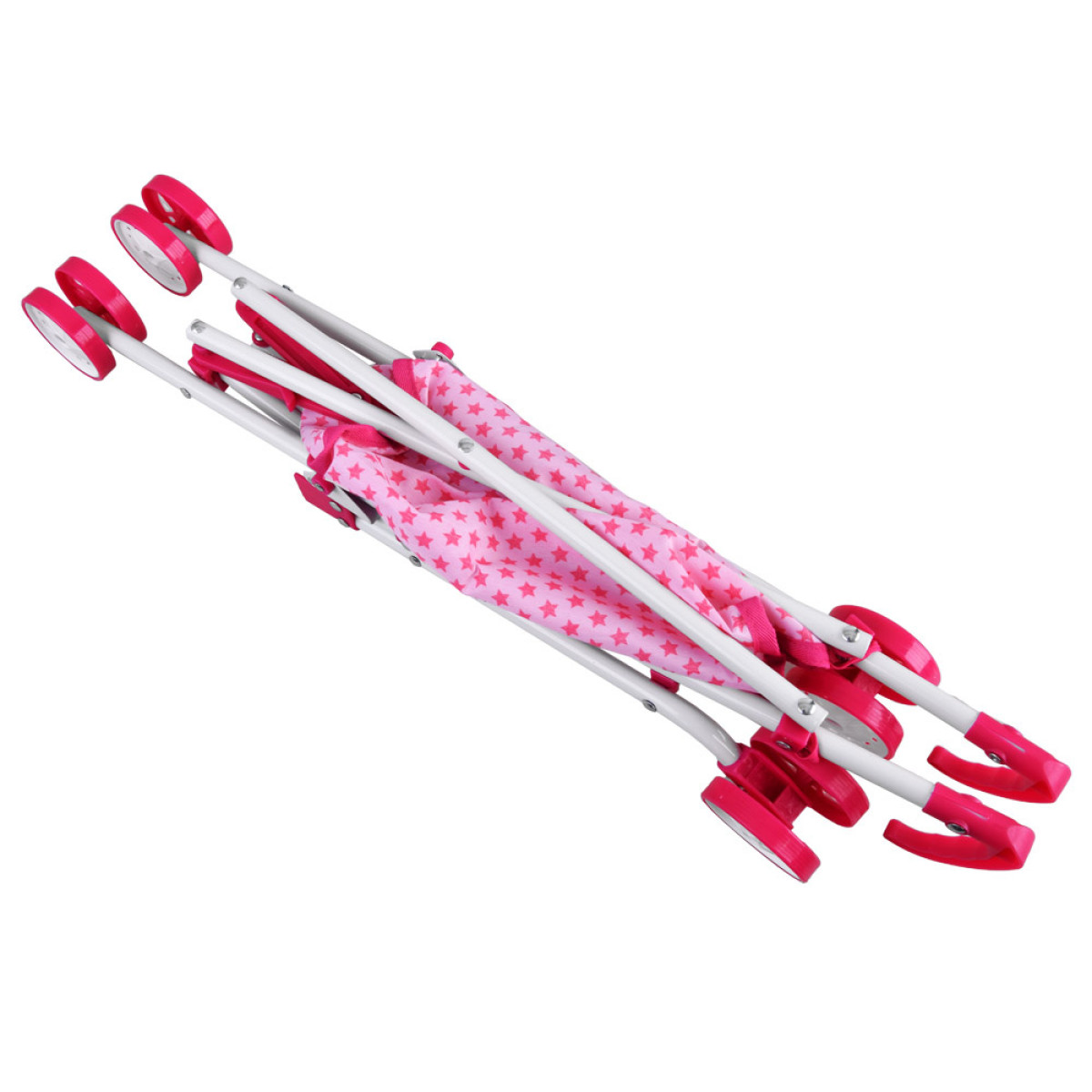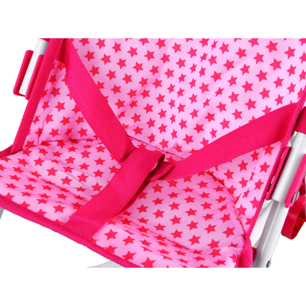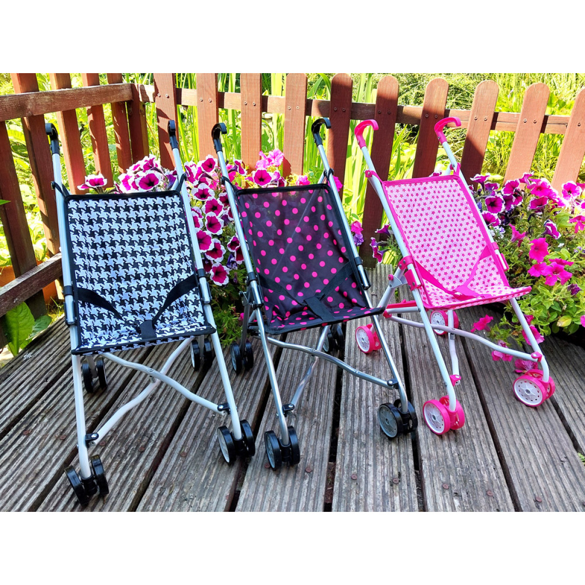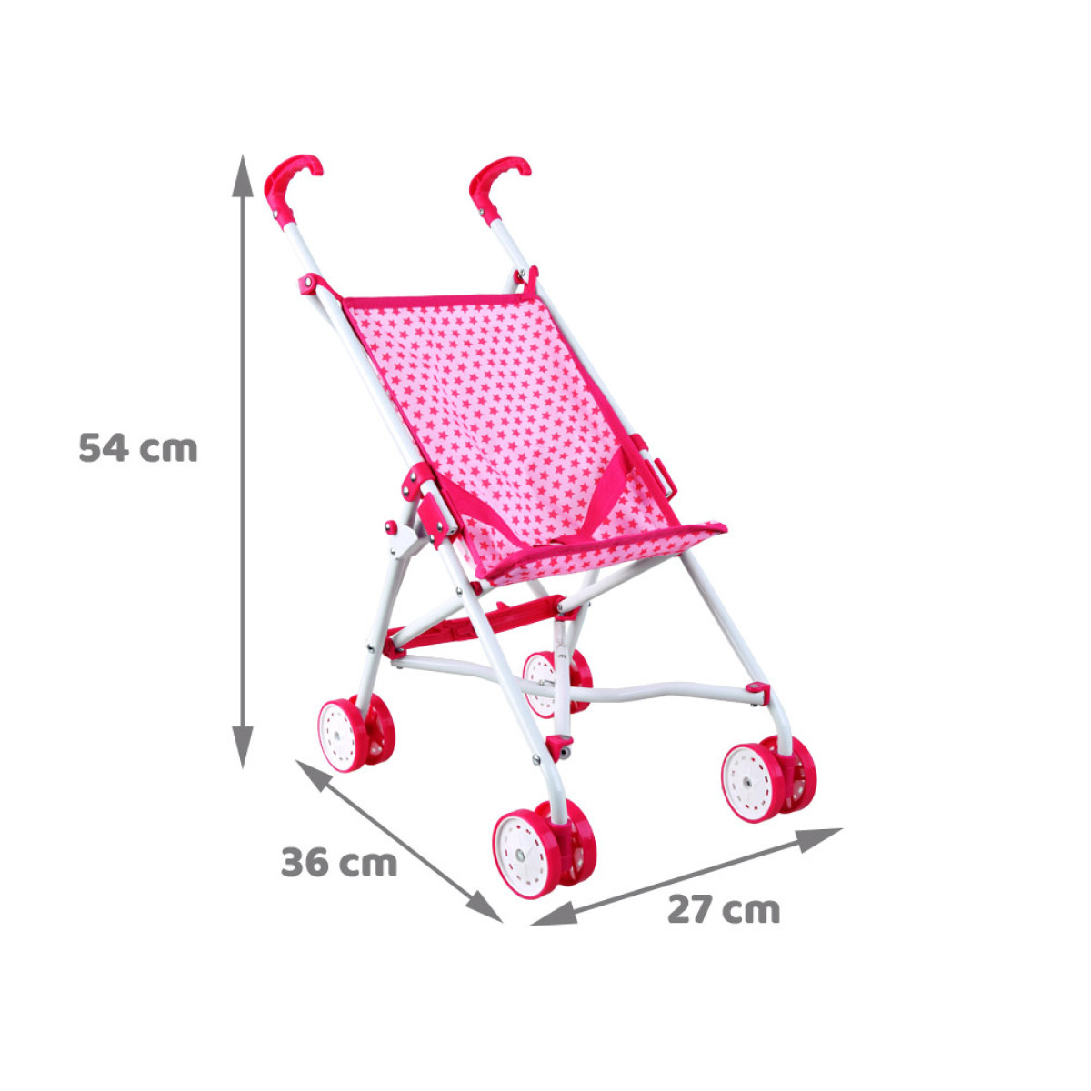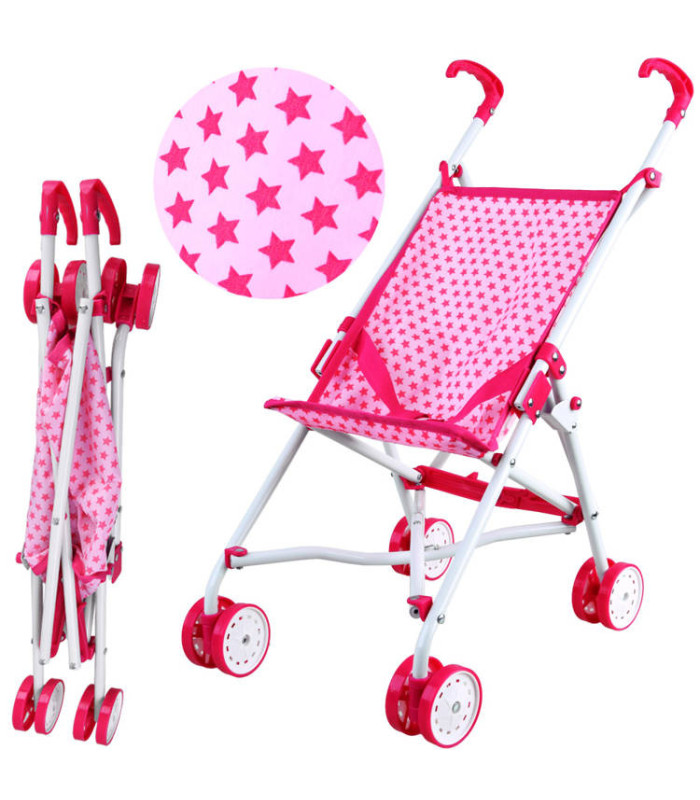 Salokāmi leļļu ratiņi burvīgā rozā krāsā ar zvaigznītēm būs piemēroti jebkurai stilizācijai. Vieglie un stabili ratiņi ir ideāls risinājums!