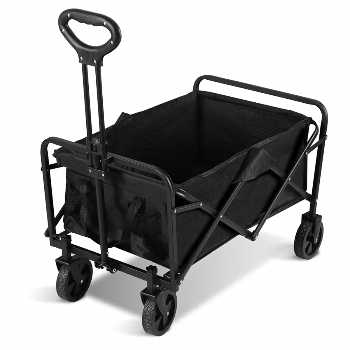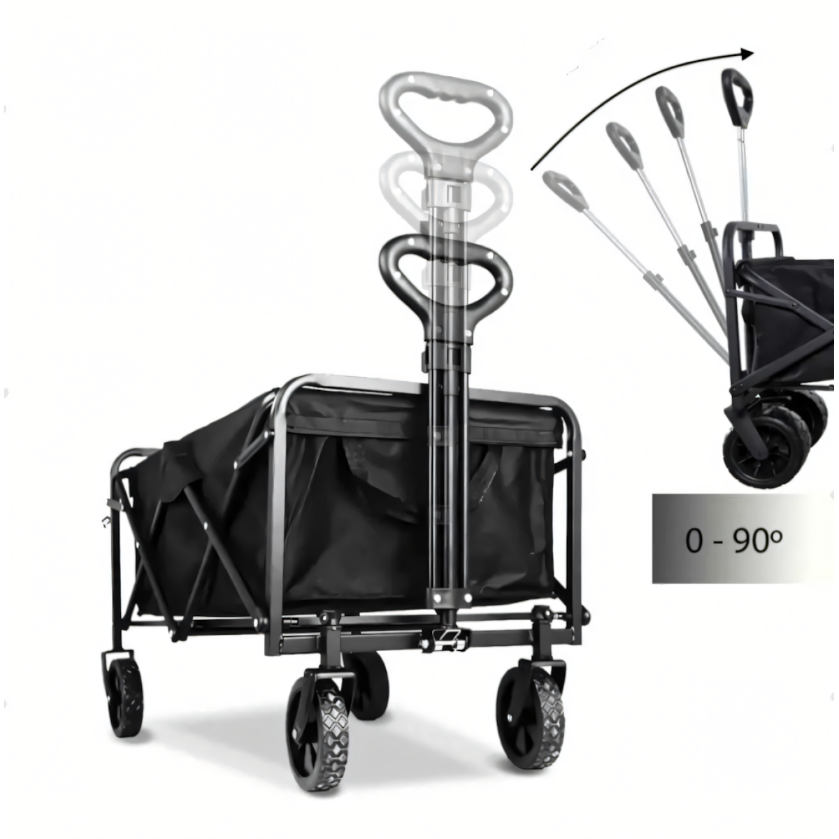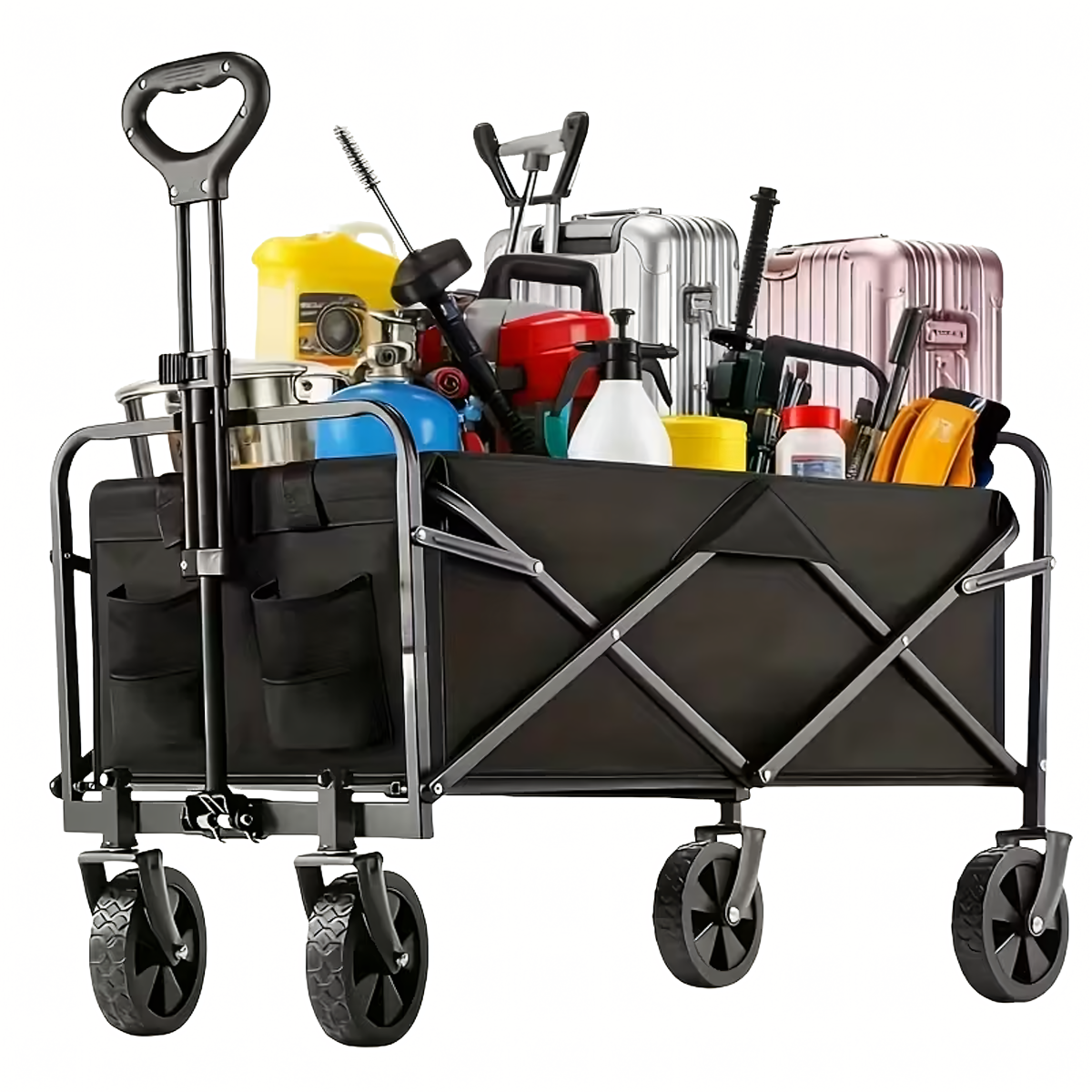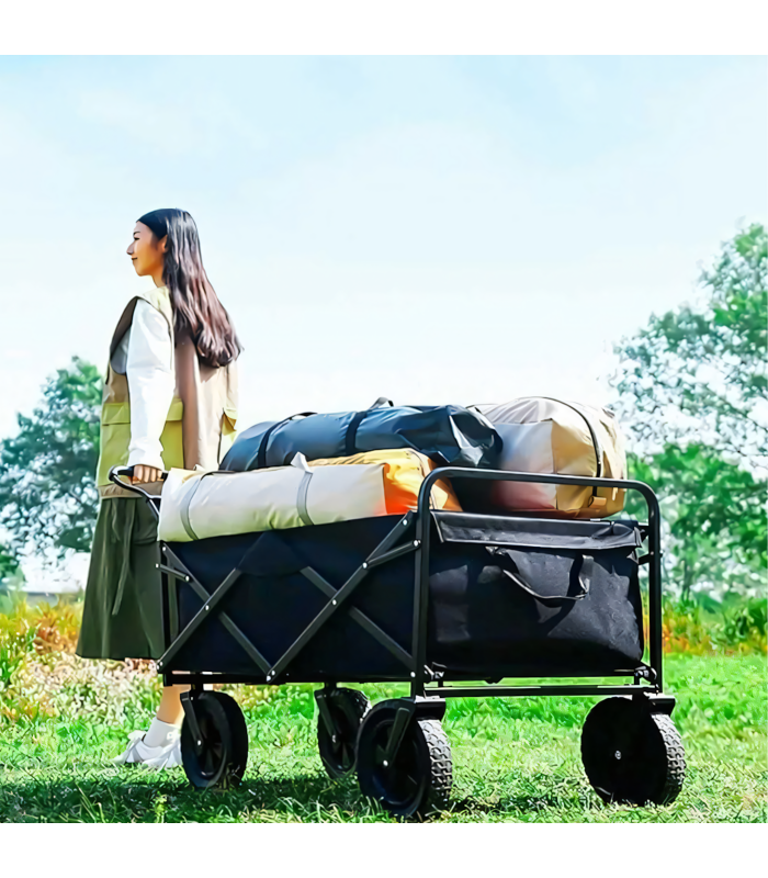 Salokāmais tūrisma ratiņš ar lielu kravnesību ir ideāls risinājums pludmalei, dārzam, kempingam vai iepirkumiem. Aprīkots ar izturīgu tērauda rāmi, ūdensnecaurlaidīgu materiālu un 360° grozāmiem riteņiem. Pēc salocīšanas aizņem maz vietas un ir viegli transportējams.