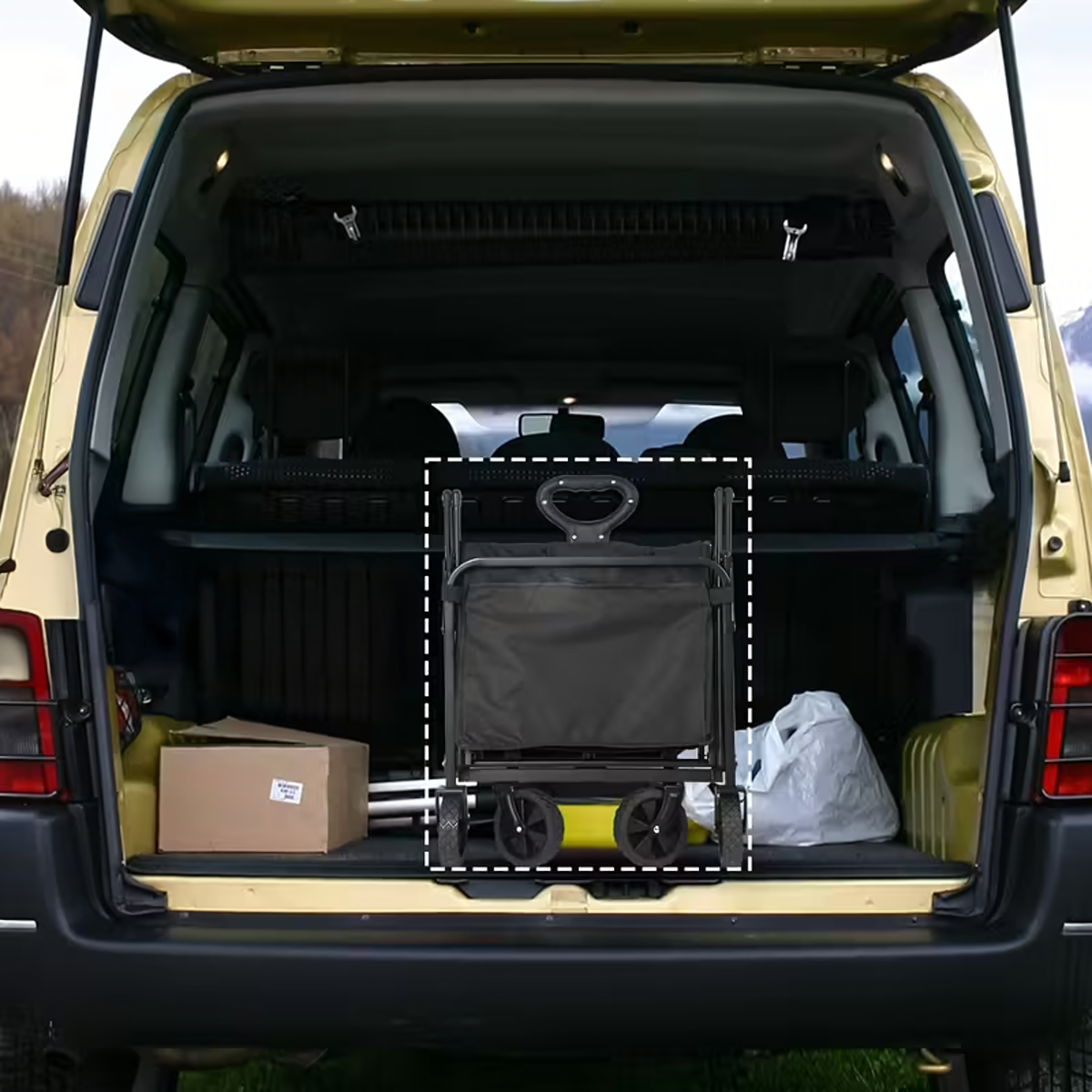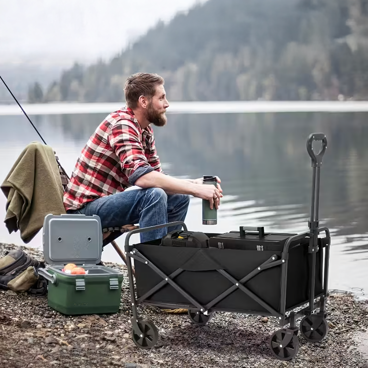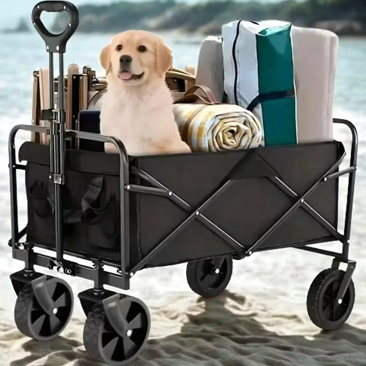 Salokāmais tūrisma ratiņš ar lielu kravnesību ir ideāls risinājums pludmalei, dārzam, kempingam vai iepirkumiem. Aprīkots ar izturīgu tērauda rāmi, ūdensnecaurlaidīgu materiālu un 360° grozāmiem riteņiem. Pēc salocīšanas aizņem maz vietas un ir viegli transportējams.