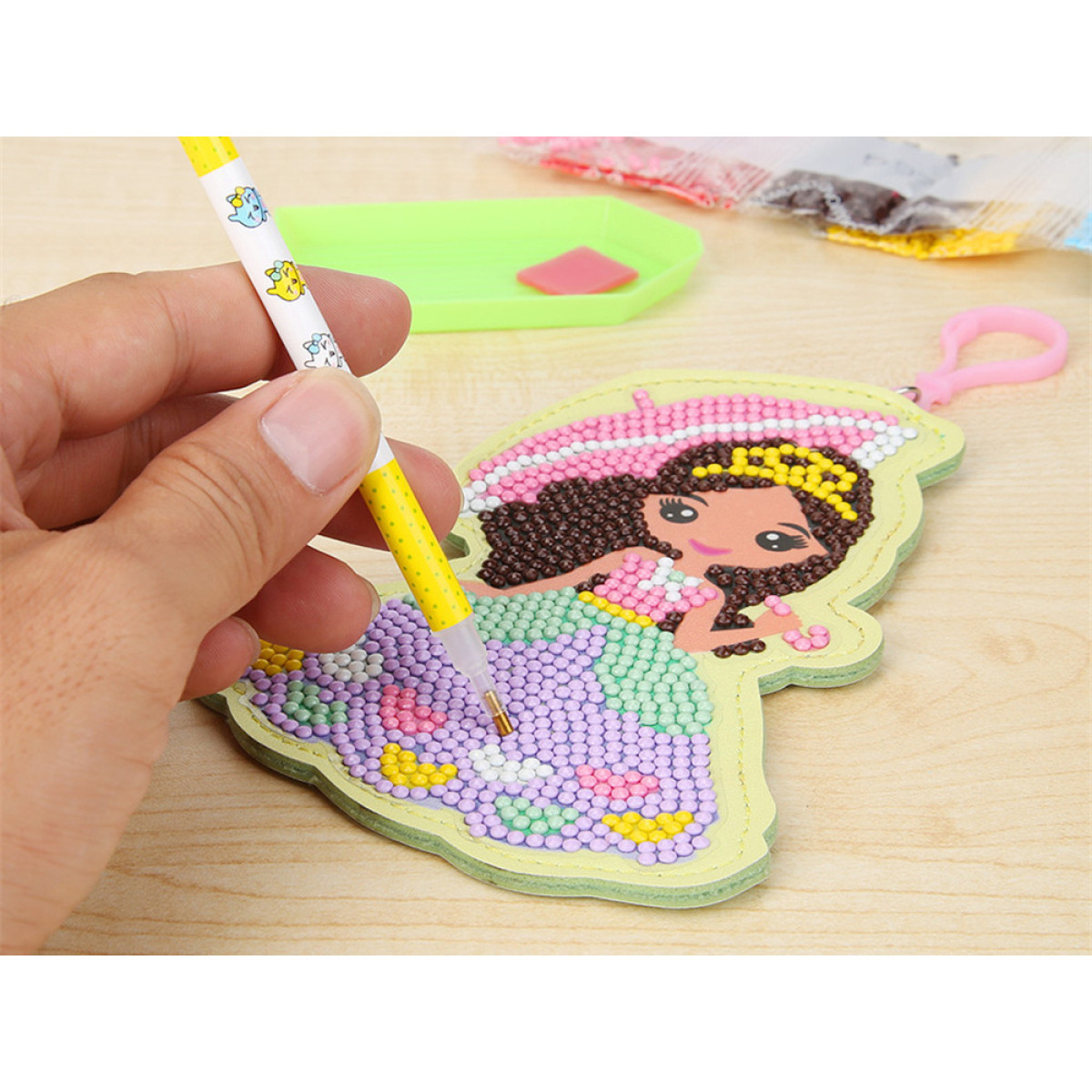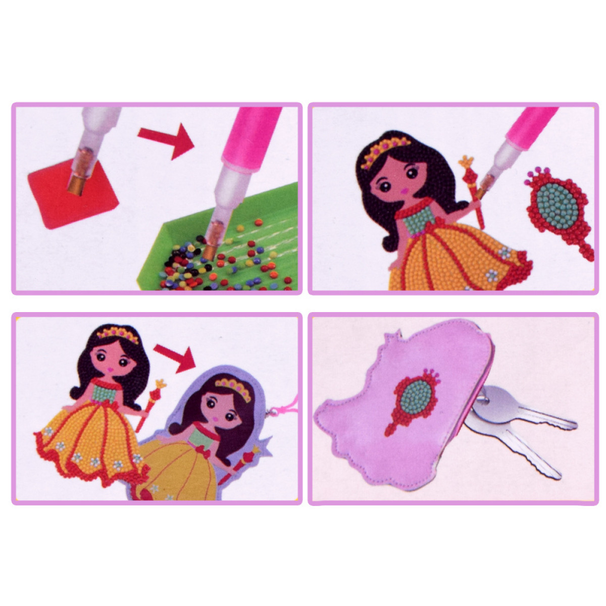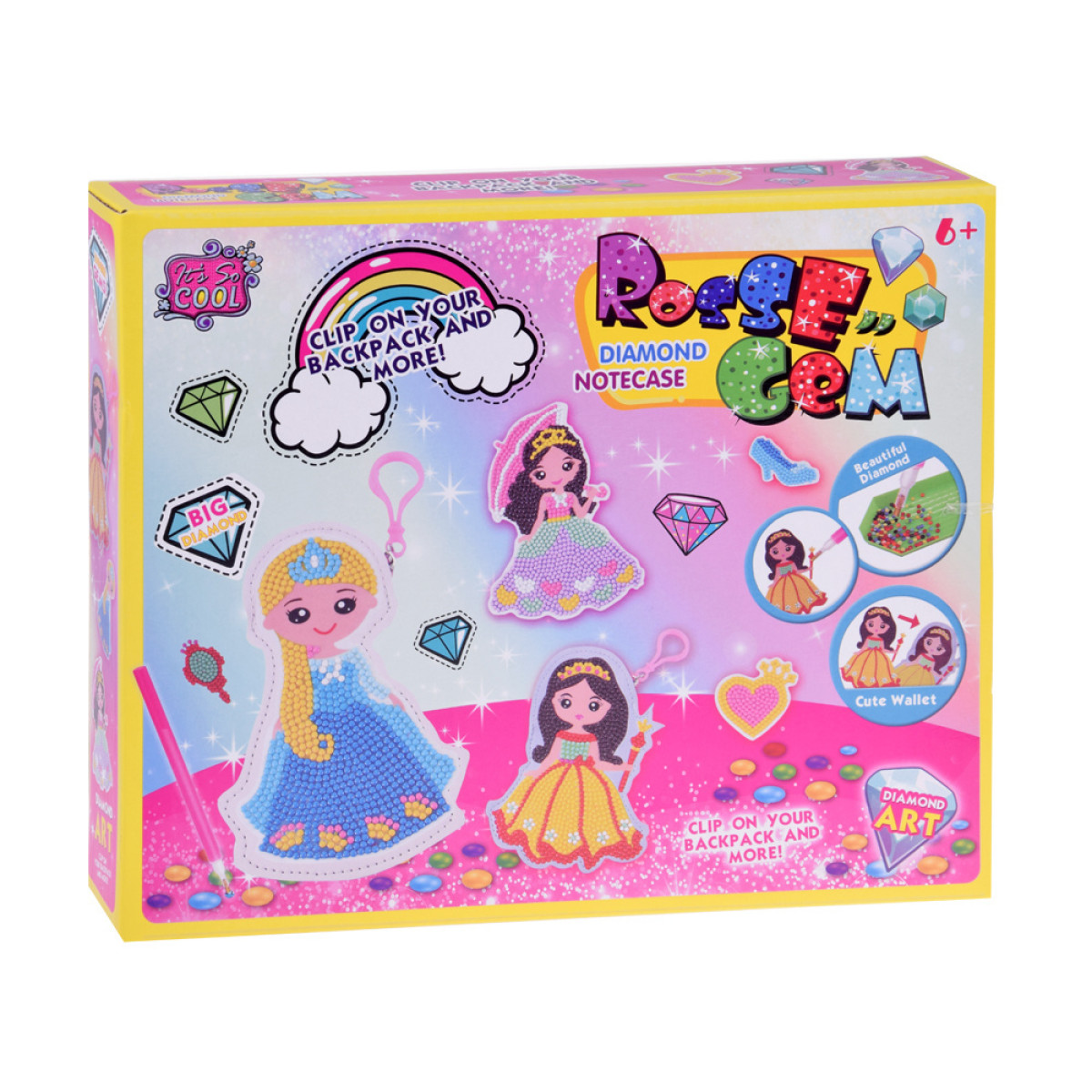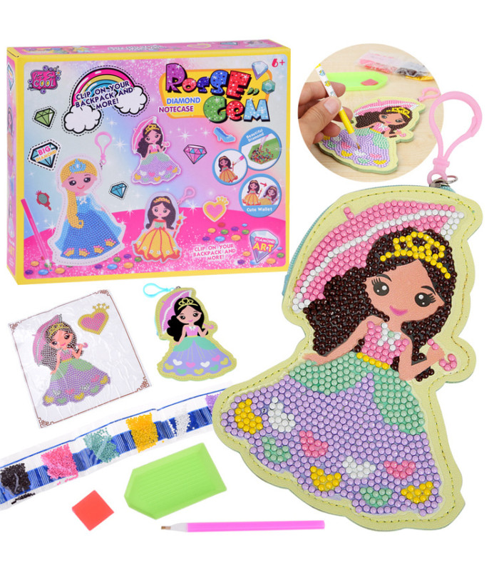 Dimanta mozaīkas komplekts ļauj izveidot skaistu rotājumu ar krāsainiem dimanta elementiem. Komplektā ietilpst maciņš ar slēdzeni un piekariņu, uzlīme un elementi mozaīkas veidošanai. Spēle ietver pareizu krāsu izvēli un to pārnešanu uz līmes šablona ar speciālu pildspalvu. Pēc elementu izkārtošanas iegūstam skaistu spīdīgu uzlīmi, kuru var izmantot piekariņa rotāšanai. Krāsaino rotājumu var piestiprināt pie mugursomas, turēt atslēgas vai sīknaudu.