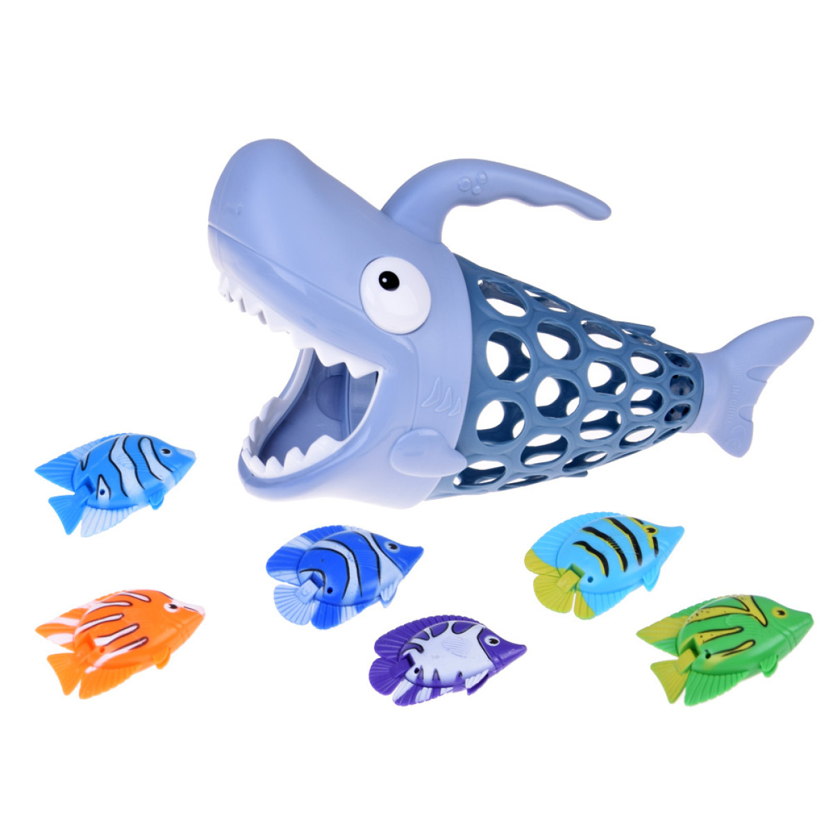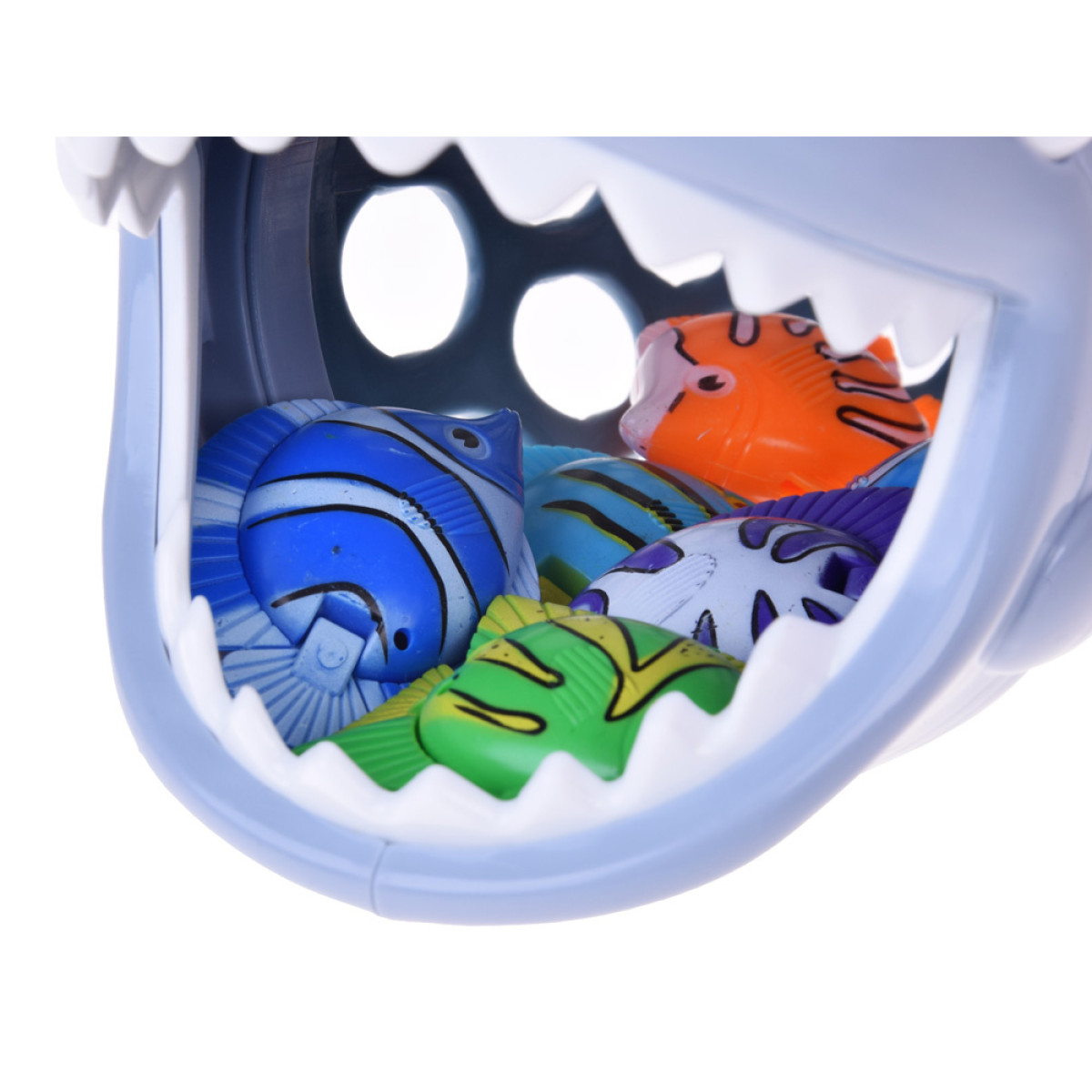 komplektā ietilpst 6 krāsainas zivtiņas, kuras bērns var noķert ar īpašu haizivs formas groziņu. Lai noķertu zem ūdens peldošās zivtiņas, nepieciešama veiklība un ātra reakcija, tāpēc rotaļa ir ne tikai jautra, bet arī attīstoša.